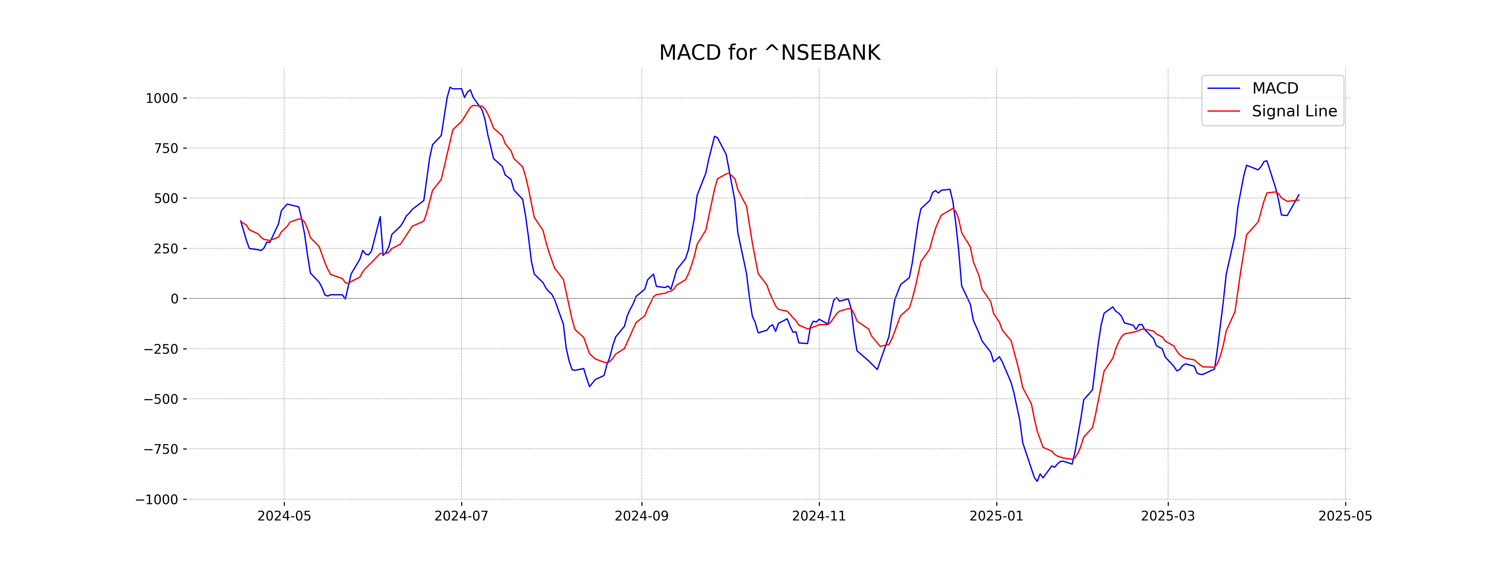 Based on the given data for Nifty Bank, the MACD is 516.56, which is above the MACD Signal of 490.24. This typically indicates a bullish trend, suggesting that the stock might continue its upward movement if the trend persists.