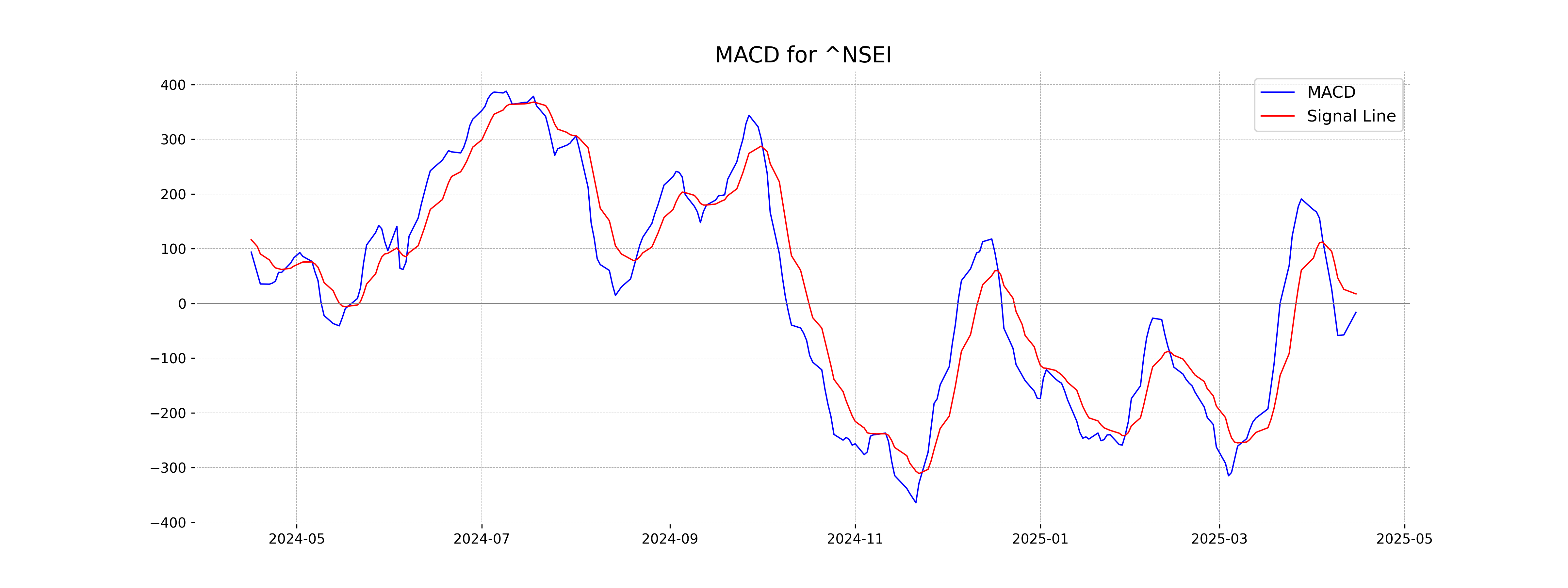 MACD Analysis for Nifty 50: The MACD value is -16.22, indicating a bearish trend as it's below the MACD Signal line value of 17.39. This suggests that the recent momentum may be weakening, and traders should consider this when making decisions.