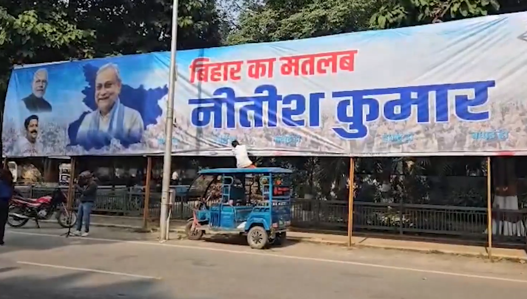 As the NDA appeared to register a landslide victory in Bihar on Friday, Patna's skyline saw a visual grammar of its own -- bold, swaggering and unmistakably centered on one man: Nitish Kumar.
