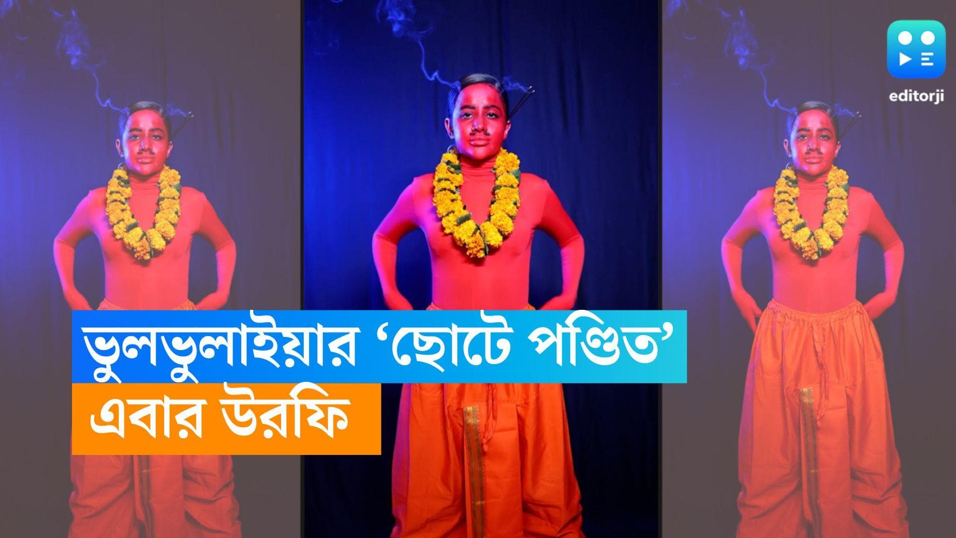 Urfi Javed: কানে গোঁজা ধূপকাঠি, গলায় গাঁদা ফুলের মালা! চোখ কচলে দেখুন তো ‘ছোটে পণ্ডিত’ না উরফি?