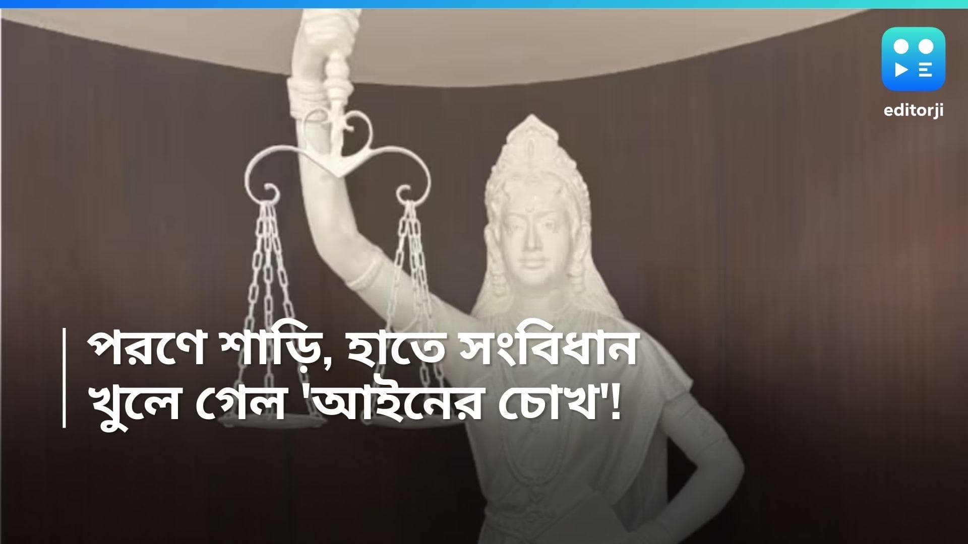 চোখে আর বাঁধা নেই কাপড়ের পট্টি। খুলে গেল ‘আইনের চোখ’। এক হাতে তরোয়াল এবং চোখে পট্টি নিয়ে যে ন্যায়ের দেবীর মূর্তি এত দিন প্রচলিত ছিল, তা বদলে যাচ্ছে। প্রধান বিচারপতি ডিওয়াই চন্দ্রচূড়ের নির্দেশে সুপ্রিম কোর্টে ইতিমধ্যে নতুন মূর্তি বসে গিয়েছে। নতুন এই নারীমূর্তির চোখে কালো পট্টি নেই। তার এক হাতে রয়েছে দাঁড়িপাল্লা, অন্য হাতে তরবারির বদলে রয়েছে ভারতের সংবিধান। গাউন ছেড়ে শাড়ি পরলেন ন্যায়দেবী। এখানেও ভারতীয়করণ।