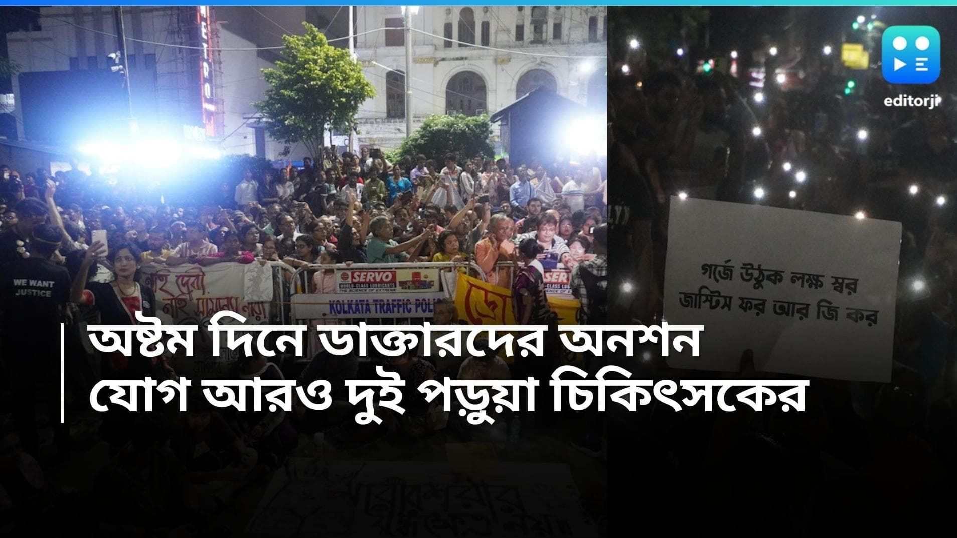 Hunger Strike: ধর্মতলার অনশনমঞ্চের অষ্টম দিন, মহাসমাবেশের রাতেই অনশনে যোগ আরও দুই পড়ুয়া চিকিৎসকের