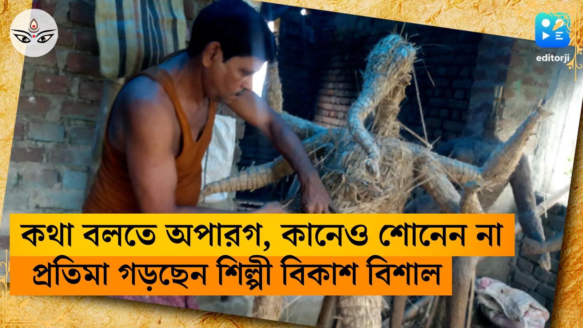 Durga Puja 2023: কথা বলতে অপারগ, কানেও শোনেন না, দুর্গামূর্তি তৈরি করে তাক লাগাচ্ছেন ঝাড়গ্রামের বিকাশ