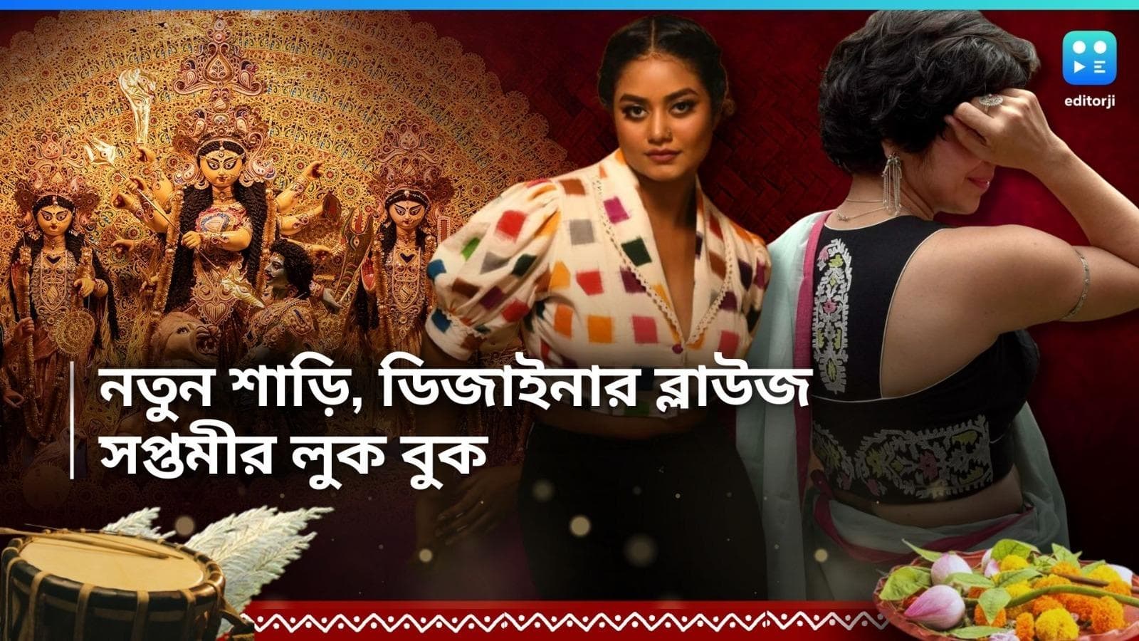 Saptami Durga Puja Look: পাট ভাঙা শাড়ির সঙ্গে ডিজাইনার বুটিকের ব্লাউজ, সপ্তমীর সাজে নো কম্প্রোমাইজ