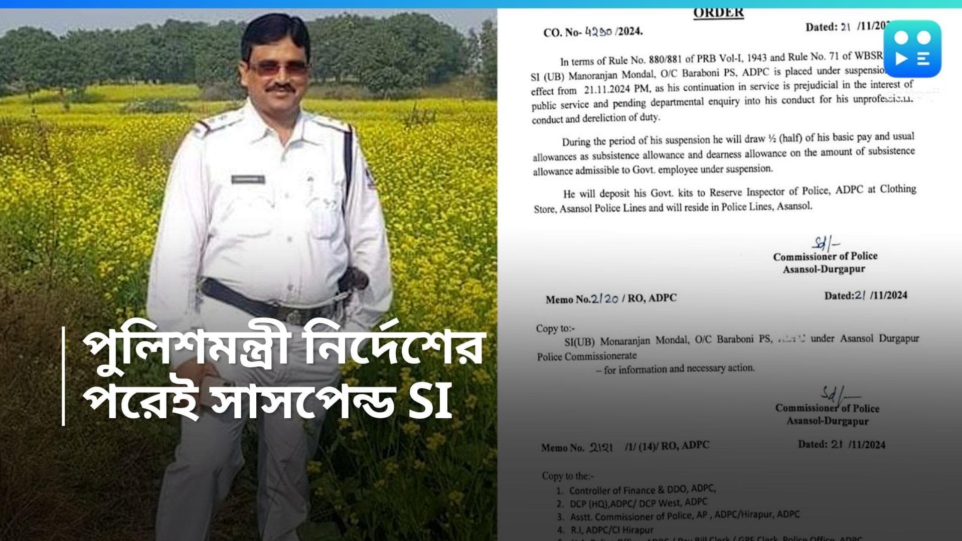 Sub Inspector Suspended : 'কর্তব্যে গাফিলতি', সাসপেন্ড বারাবনির SI, পুলিশমন্ত্রীর নির্দেশের পরেই তৎপরতা