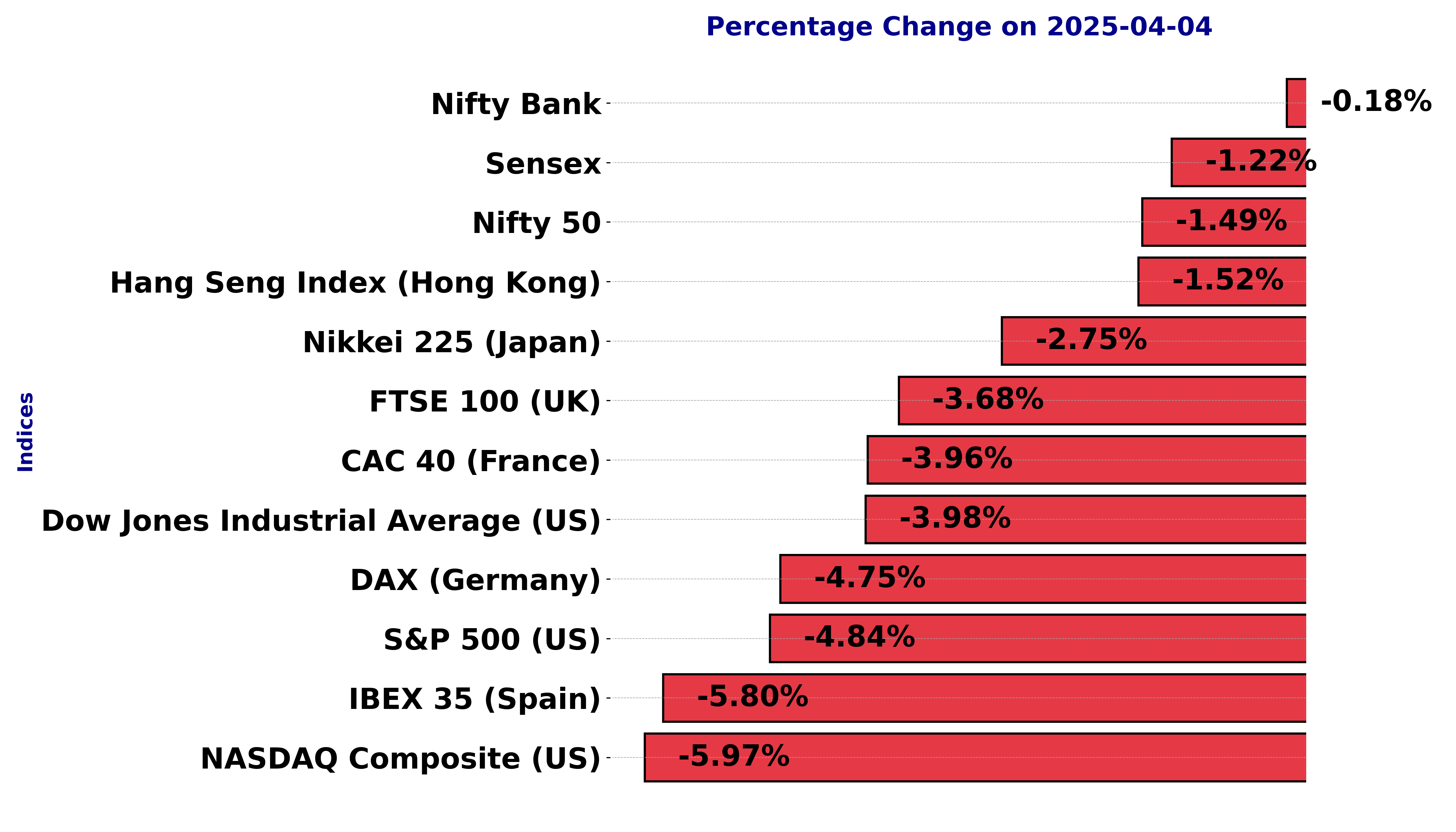 Global stock market indices: How the world markets performed today - 4 April 2025