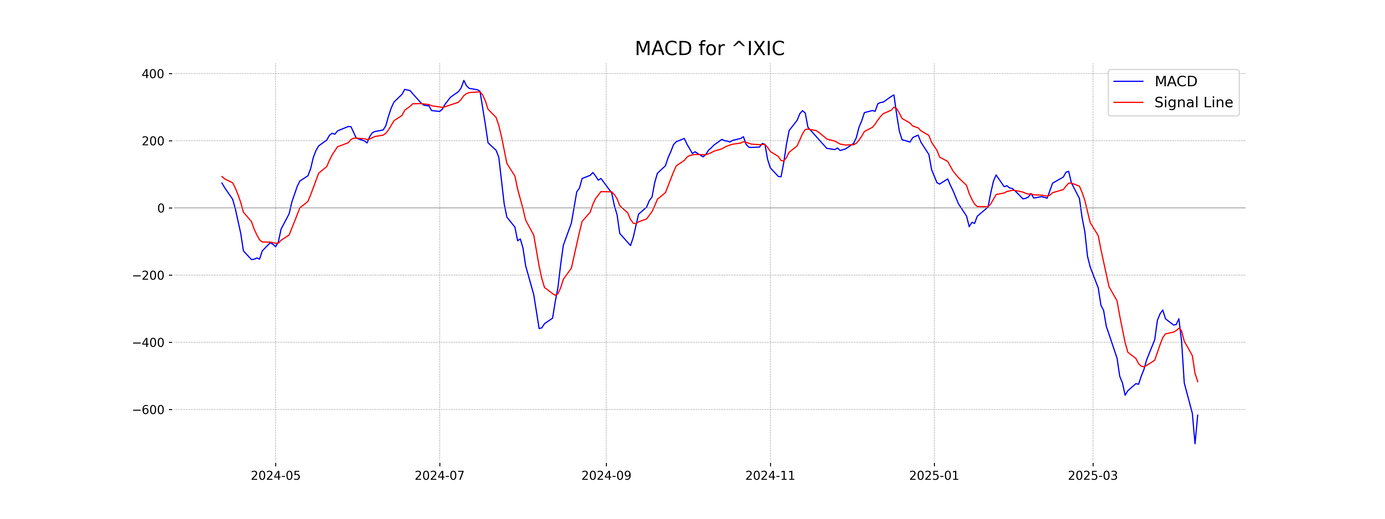 MACD Analysis for NASDAQ Composite (US): The MACD value of -616.62, which is below the MACD signal line at -516.93, indicates a bearish trend for the NASDAQ Composite. This suggests that the index may experience downward momentum or continued weakening in the short term.