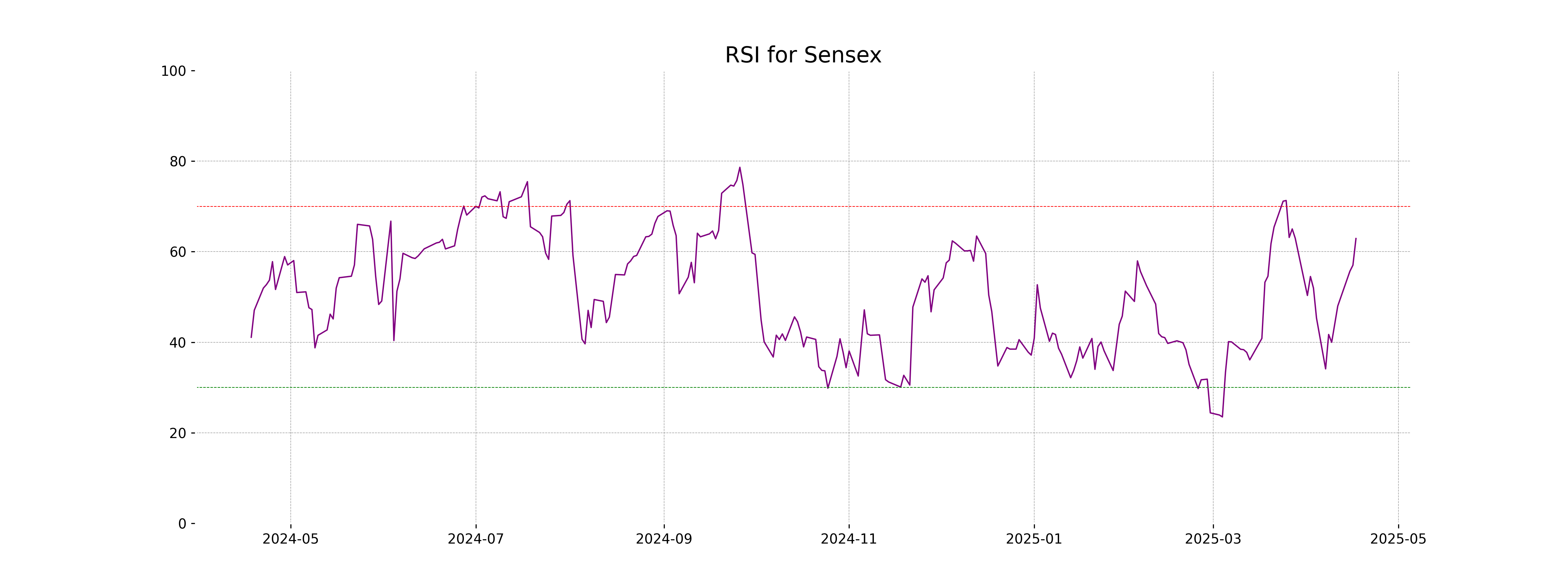 Based on the stock data, the Relative Strength Index (RSI) for Sensex is 62.90. This indicates a moderately strong momentum and suggests that the stock is neither overbought nor oversold at the current levels. Generally, an RSI above 70 is considered overbought, and below 30 is considered oversold.