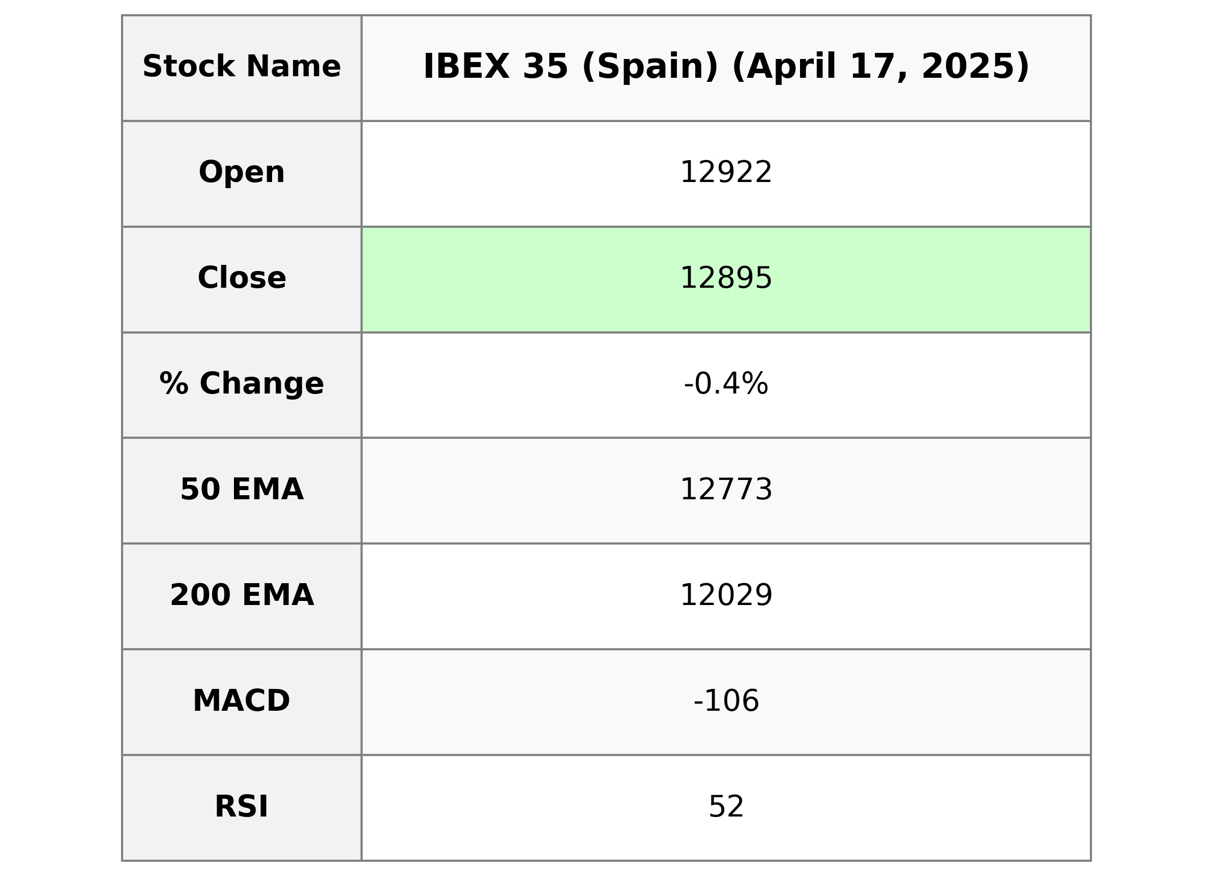 Analysis for IBEX 35 (Spain) - April 17, 2025