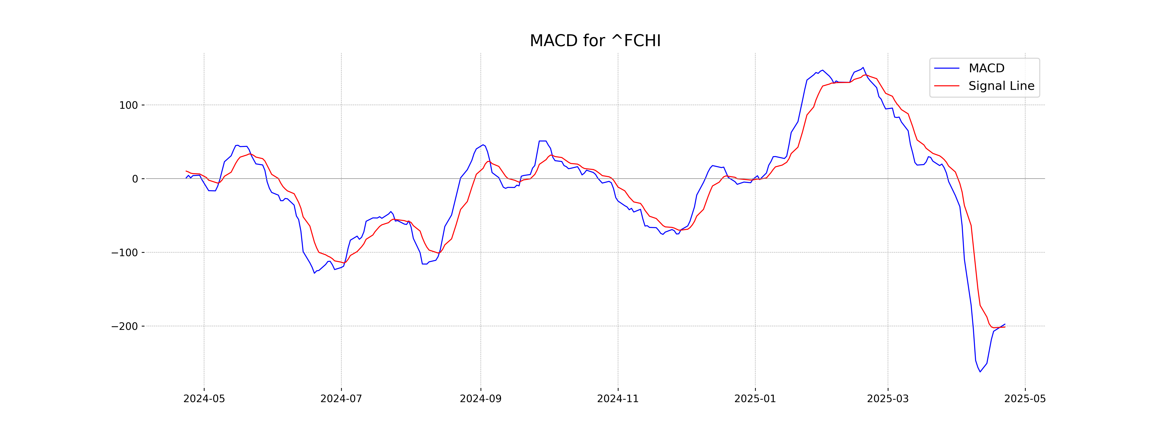 Analysis of MACD for Hang Seng Index Hong Kong: The MACD value of -533.33 is below the MACD Signal of -481.60, indicating bearish momentum. Additional analysis of the trend indicates potential continued bearish movement.