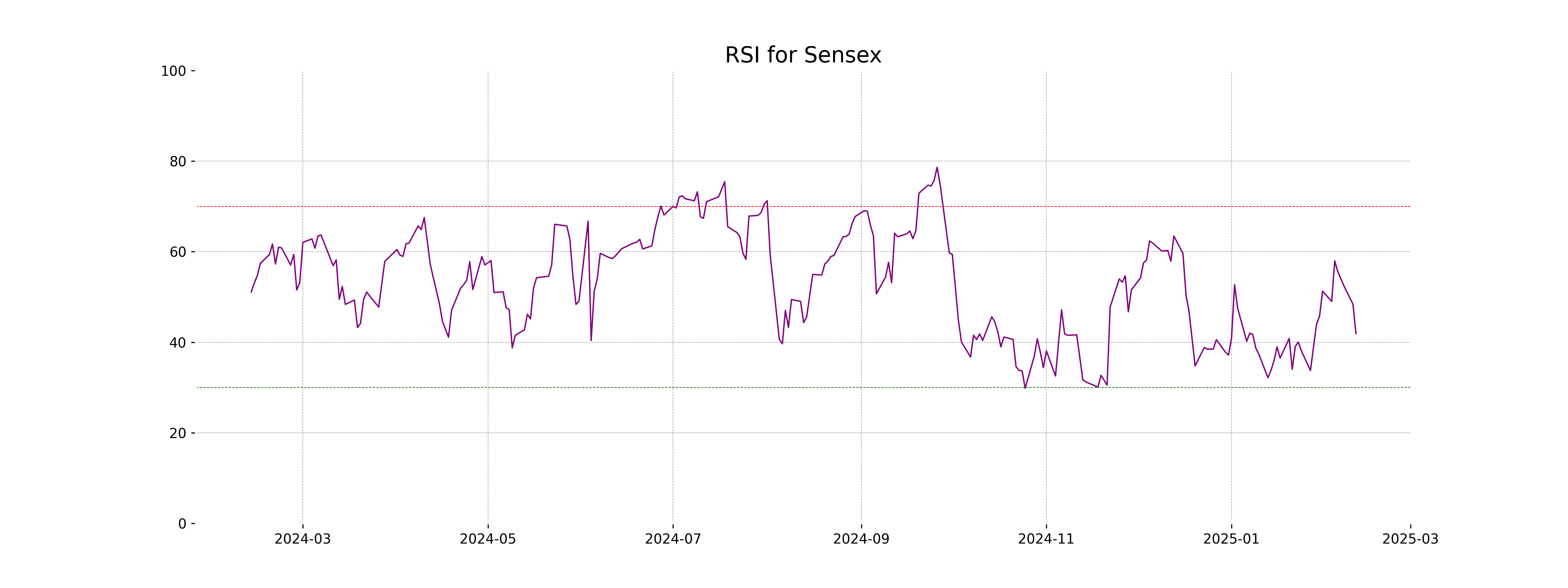 The RSI for Sensex is 41.92, which suggests that the index is nearing the oversold territory (below 30) but is not there yet. This indicates that the selling pressure has been high, and it may be approaching a point where a reversal or consolidation could occur.