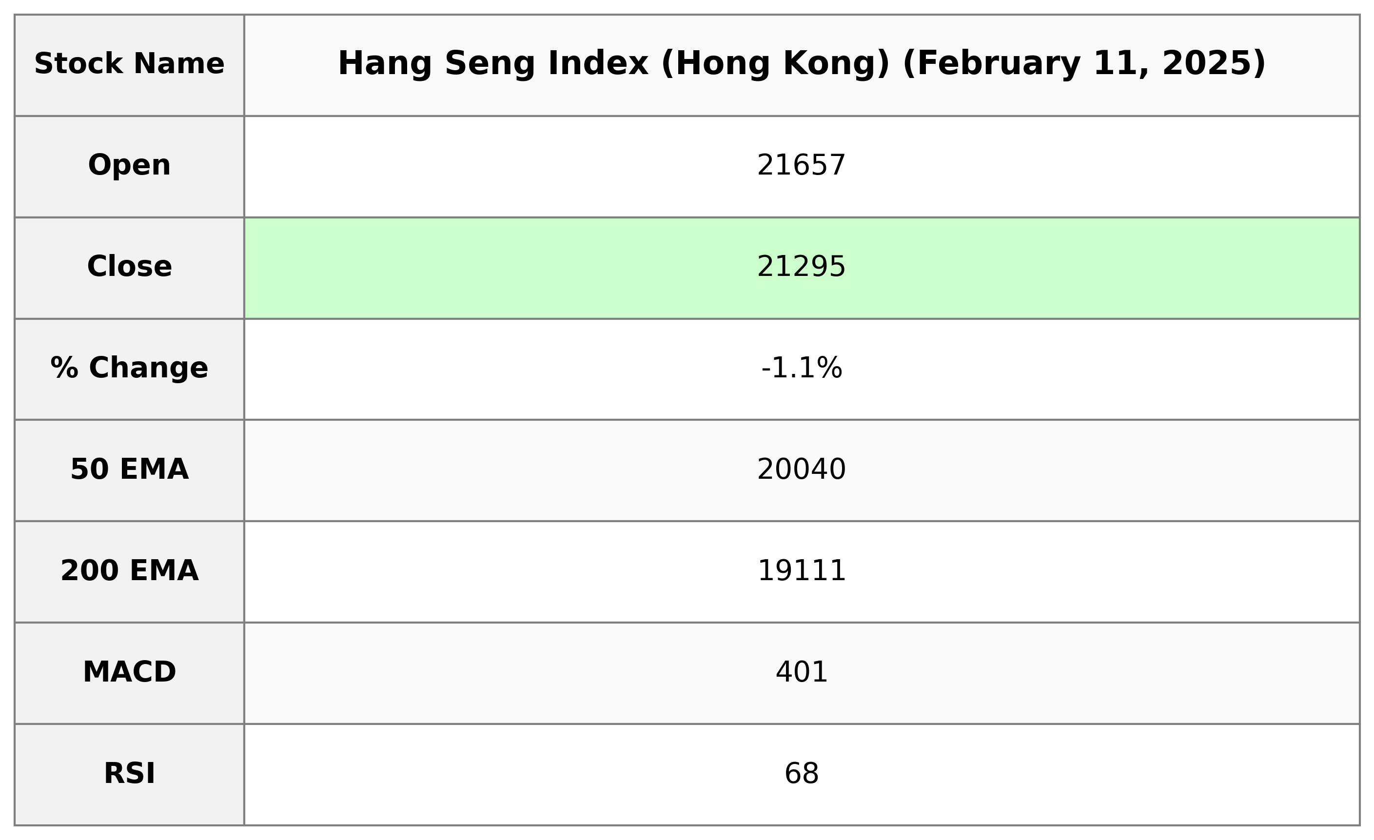 Analysis for Hang Seng Index (Hong Kong) - February 11, 2025