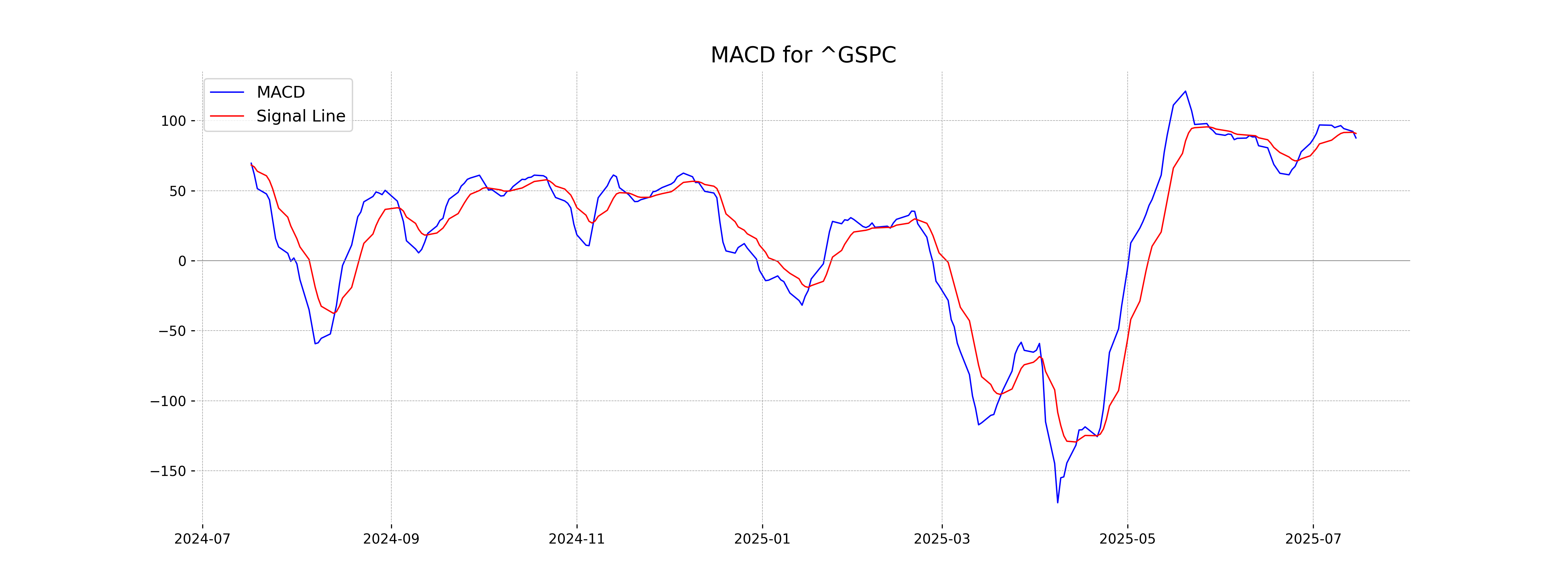 The S&P 500 opened at 6295.29, reaching a high of 6302.04 and a low of 6241.68, ultimately closing at 6243.76. There was a decrease of 0.40% or 24.80 points compared to the previous close of 6268.56. The volume traded was 5.13 billion. The 50-day EMA was 6013.89, while the 200-day EMA was 5788.58. The RSI was moderately high at 64.75, and the MACD indicates a minor downtrend compared to its signal line.