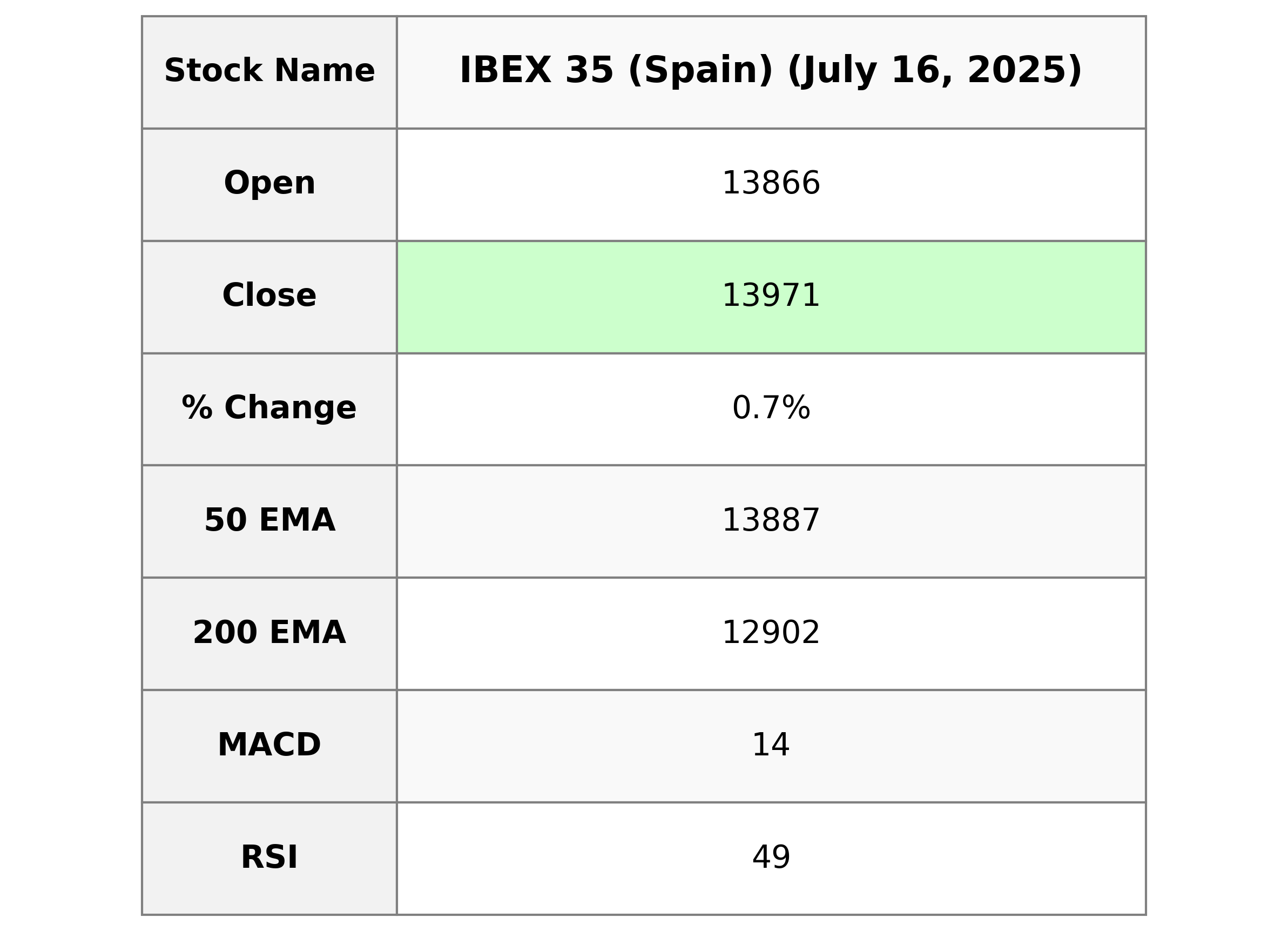 Analysis for IBEX 35 (Spain) - July 16, 2025