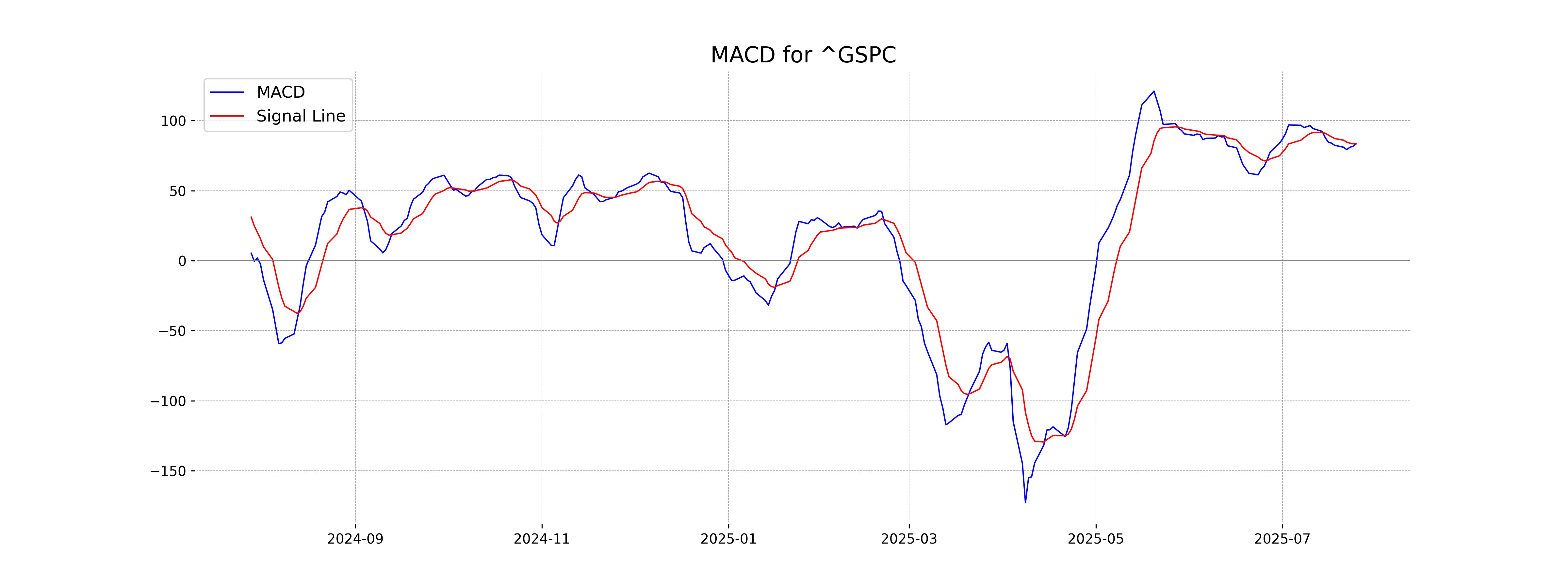 The MACD for S&P 500 is 83.39, while the MACD Signal is 83.47. This close proximity suggests a potential crossover, indicating a possible shift in momentum. With the RSI at 76.21, the index is also in the overbought territory, which might signal a cautious outlook for further gains.