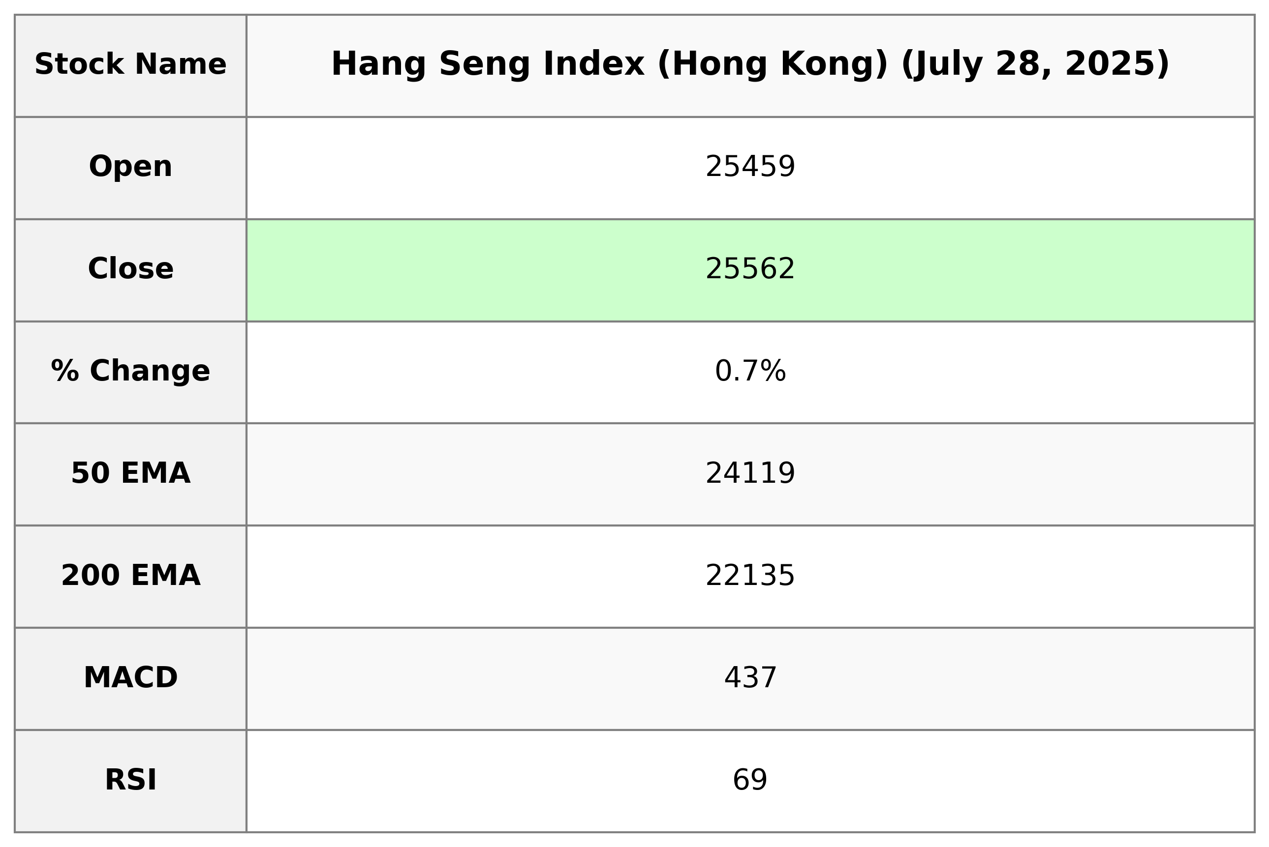 Analysis for Hang Seng Index (Hong Kong) - July 28, 2025
