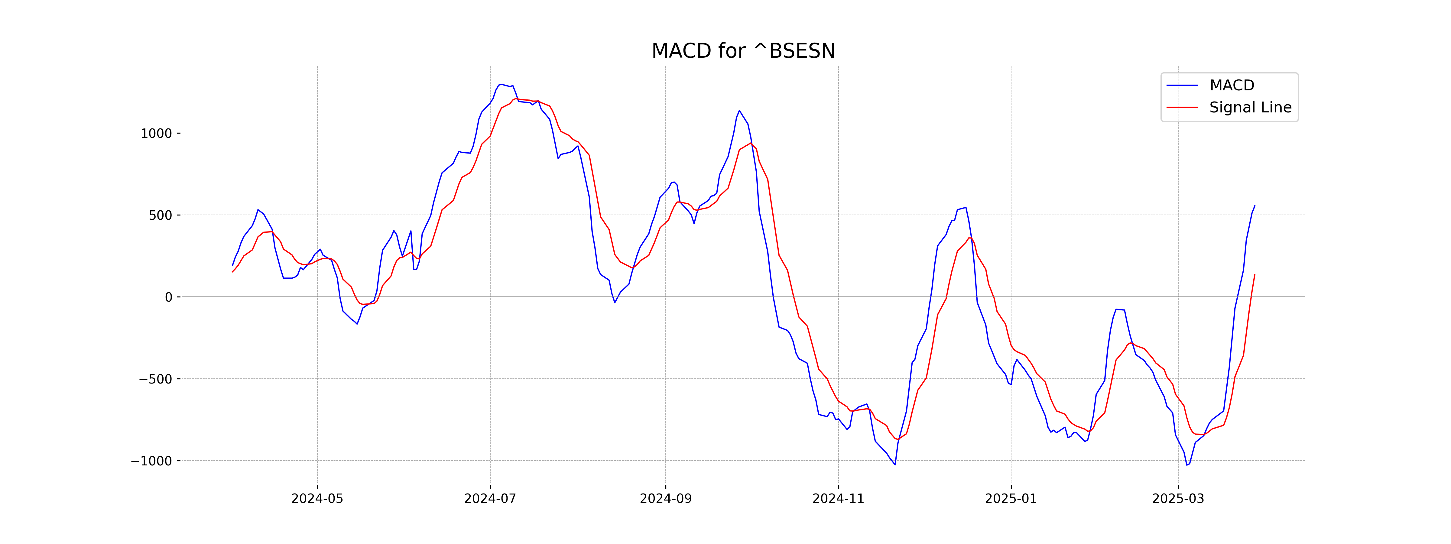 The MACD value for Sensex is 555.44, which is above the MACD Signal line at 136.41, indicating a bullish trend. This suggests that the stock is gaining upward momentum.
