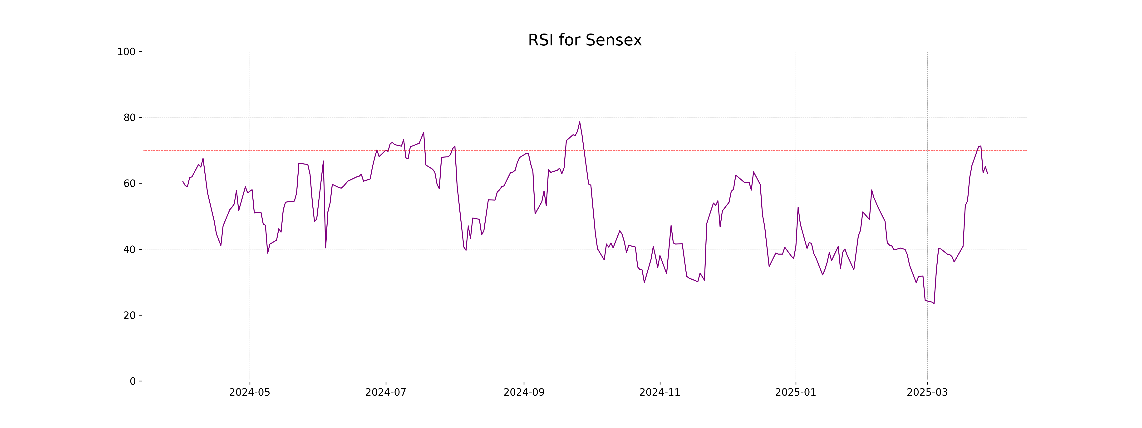 The Relative Strength Index (RSI) for Sensex is at 62.94, which suggests a moderately overbought condition. An RSI above 70 typically indicates that a stock may be overbought, while an RSI below 30 suggests it may be oversold. With the current RSI above 60, Sensex is leaning towards the higher end of its range, but not yet in the extreme overbought territory.