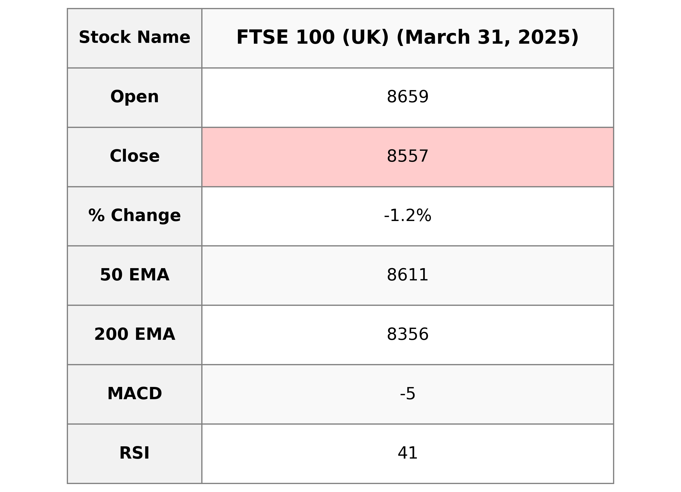Analysis for FTSE 100 (UK) - March 31, 2025