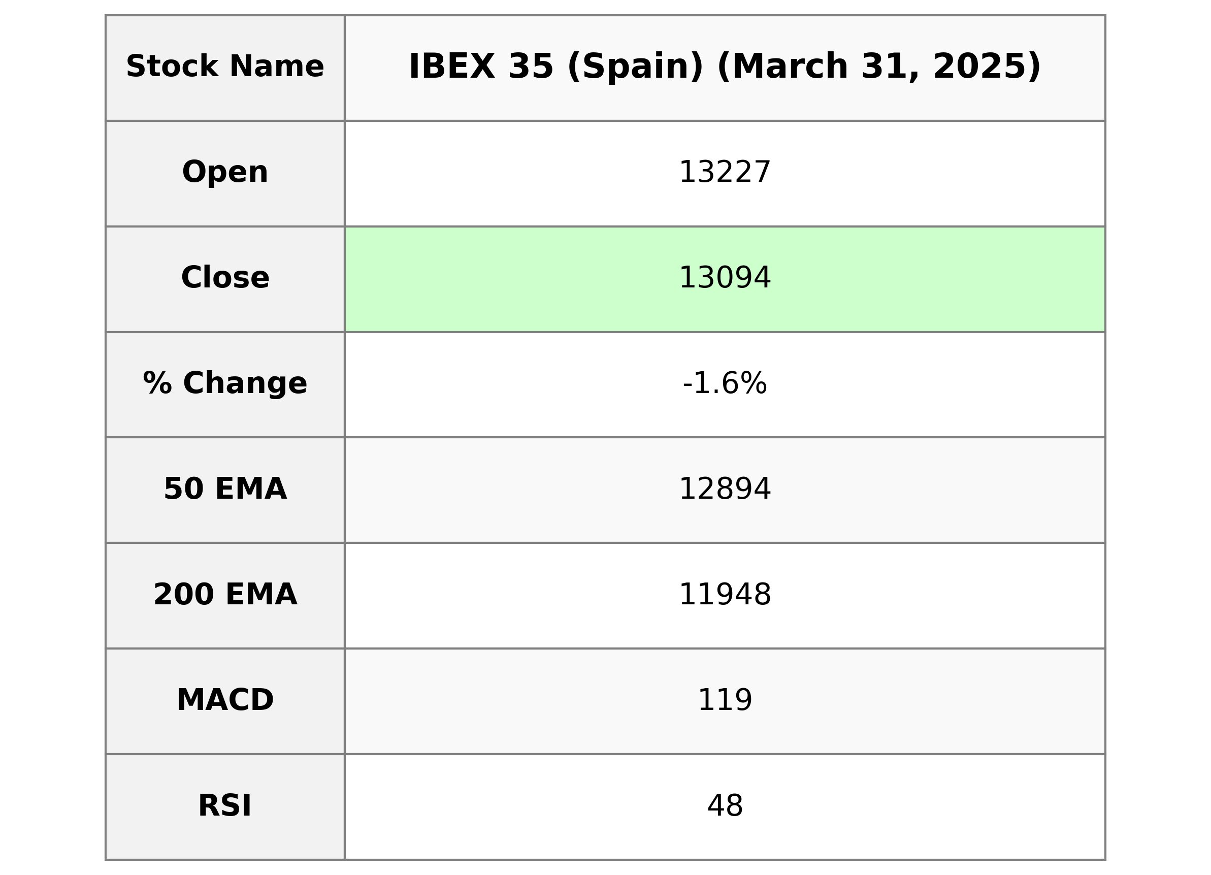 Analysis for IBEX 35 (Spain) - March 31, 2025