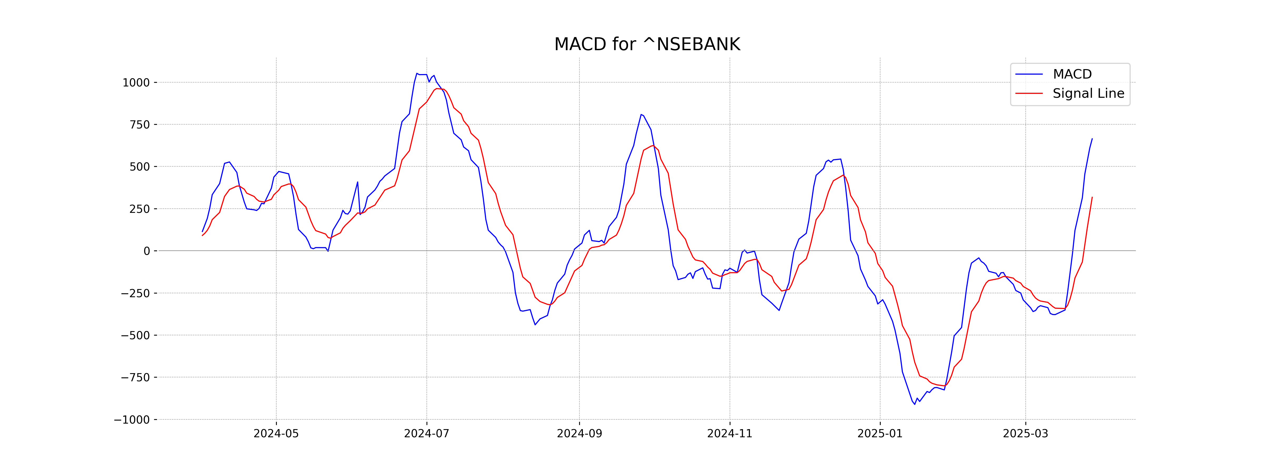 Nifty Bank shows a positive MACD value of 663.67, which is above the MACD Signal of 316.90, suggesting a bullish momentum. The MACD histogram indicates that the upward momentum might continue, but the slight decrease in closing price suggests caution.