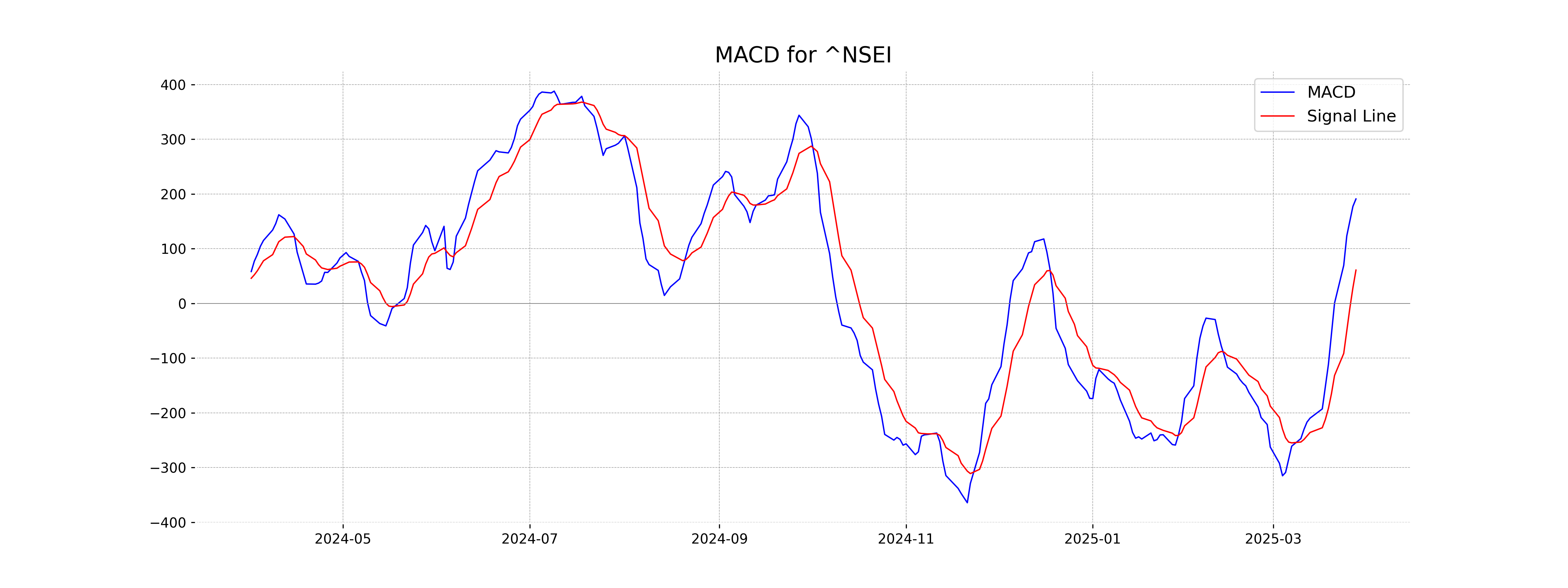 The MACD for Nifty 50 is 190.96, significantly above the signal line of 60.93, indicating bullish momentum. This suggests that upward momentum is strong, and the recent trend may continue.