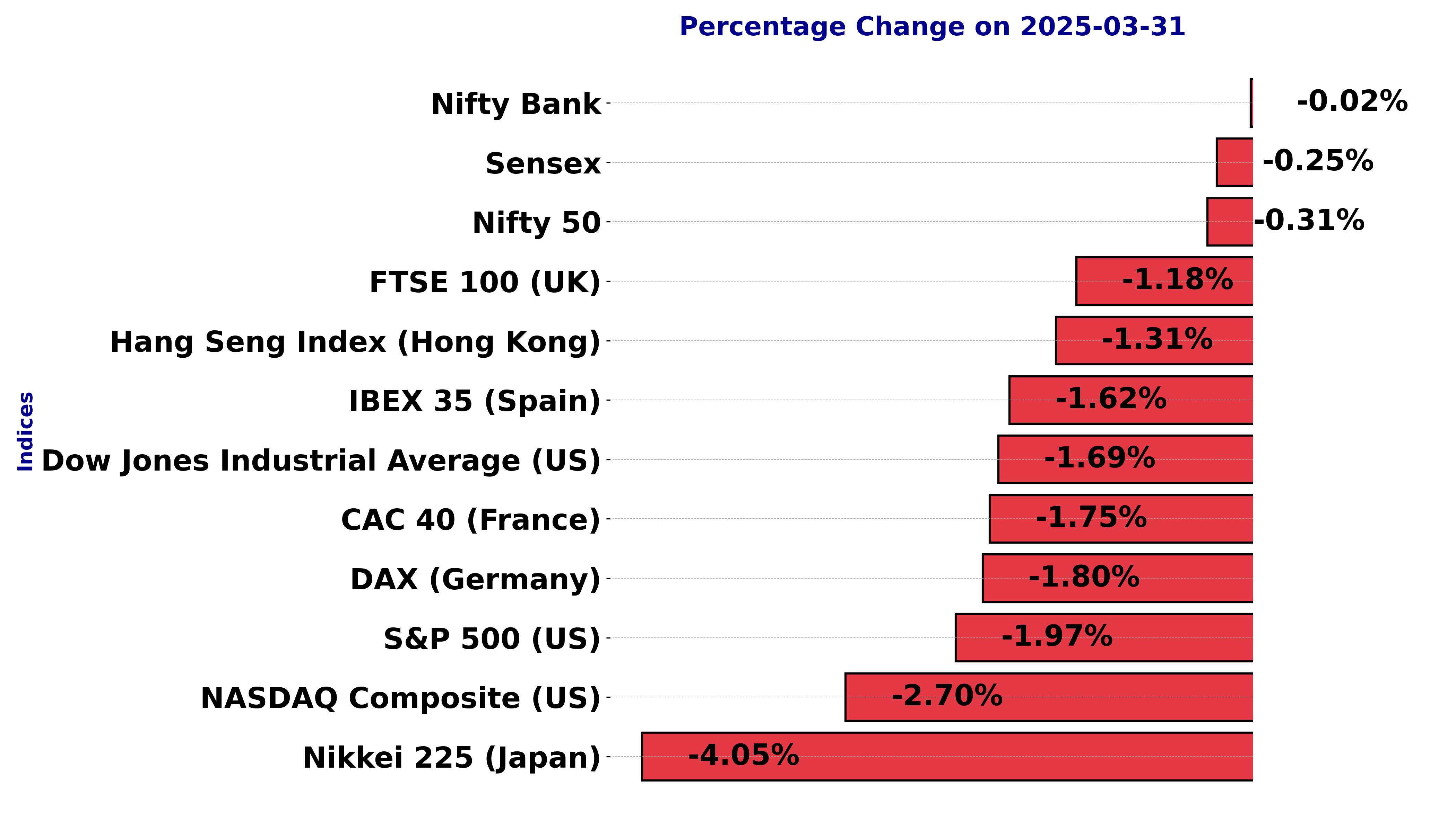 Global stock market indices: How the world markets performed today - 31 March 2025