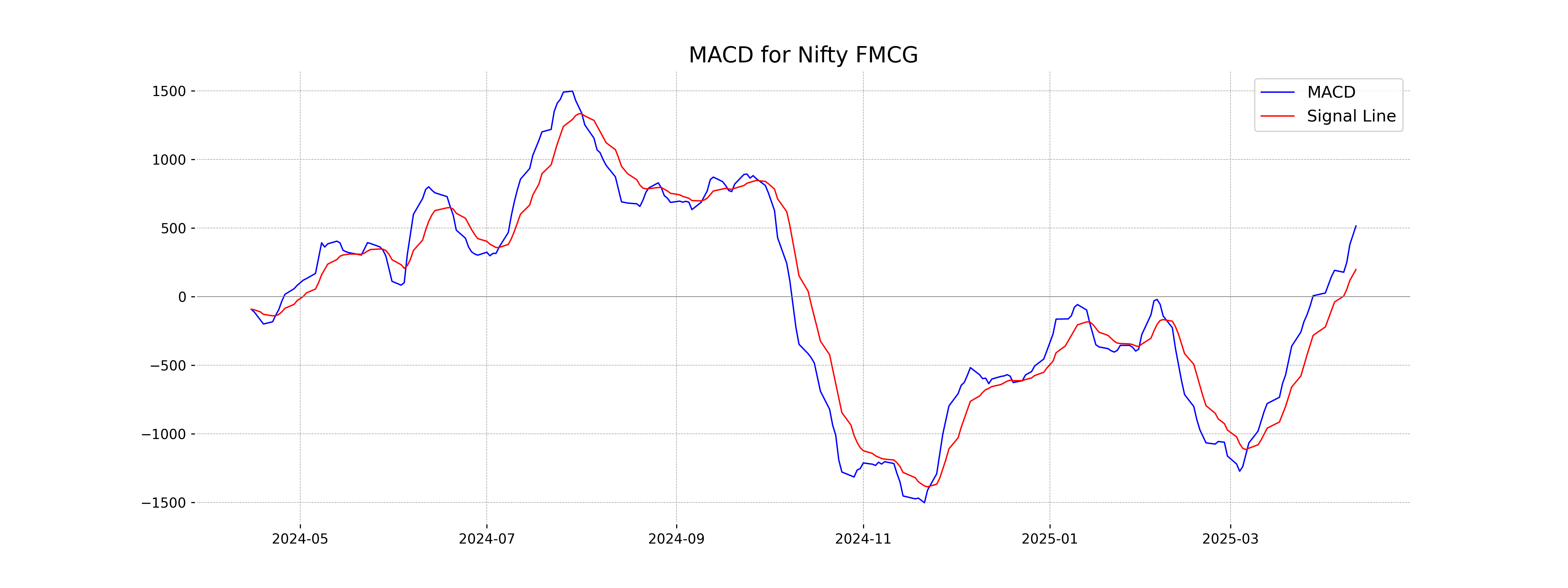 The MACD value for Nifty FMCG is significantly higher than the MACD Signal, indicating strong bullish momentum. With an RSI of 70.88, the index may be overbought, suggesting caution while trading at these levels.