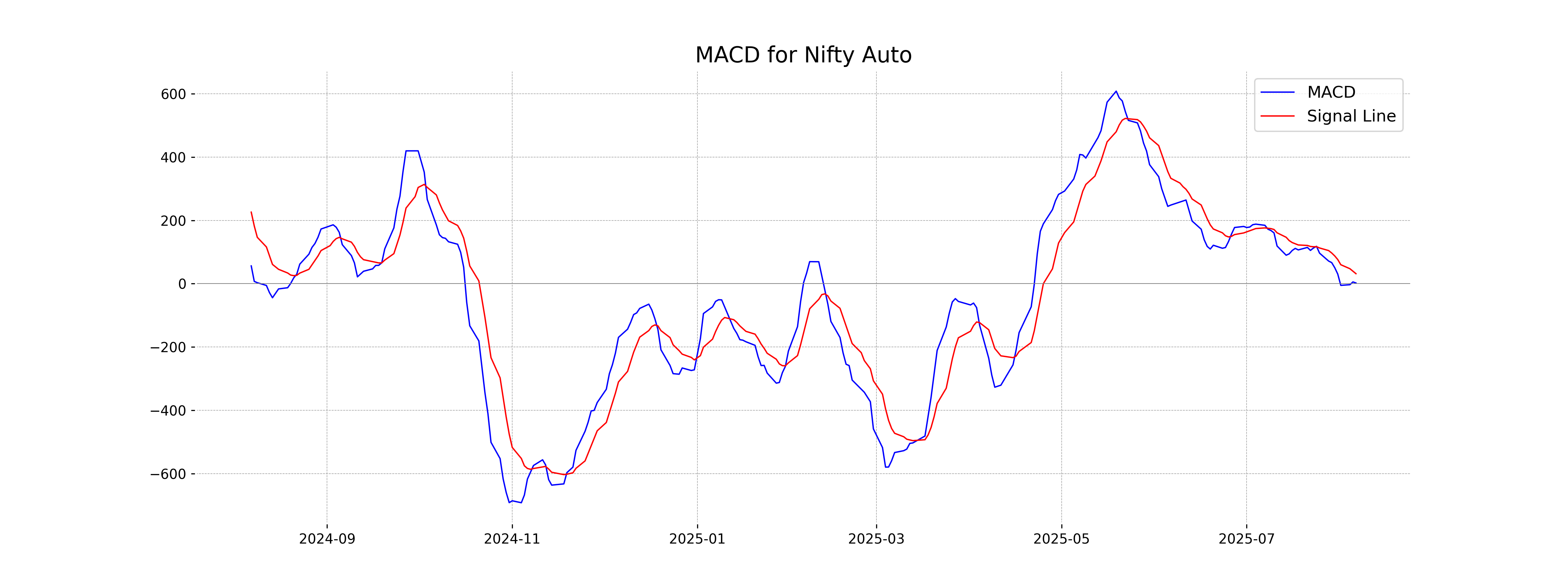The MACD value for Nifty Auto at 2.25 is below its MACD Signal line at 31.69, indicating a bearish momentum. This suggests that the stock is currently in a downward trend.