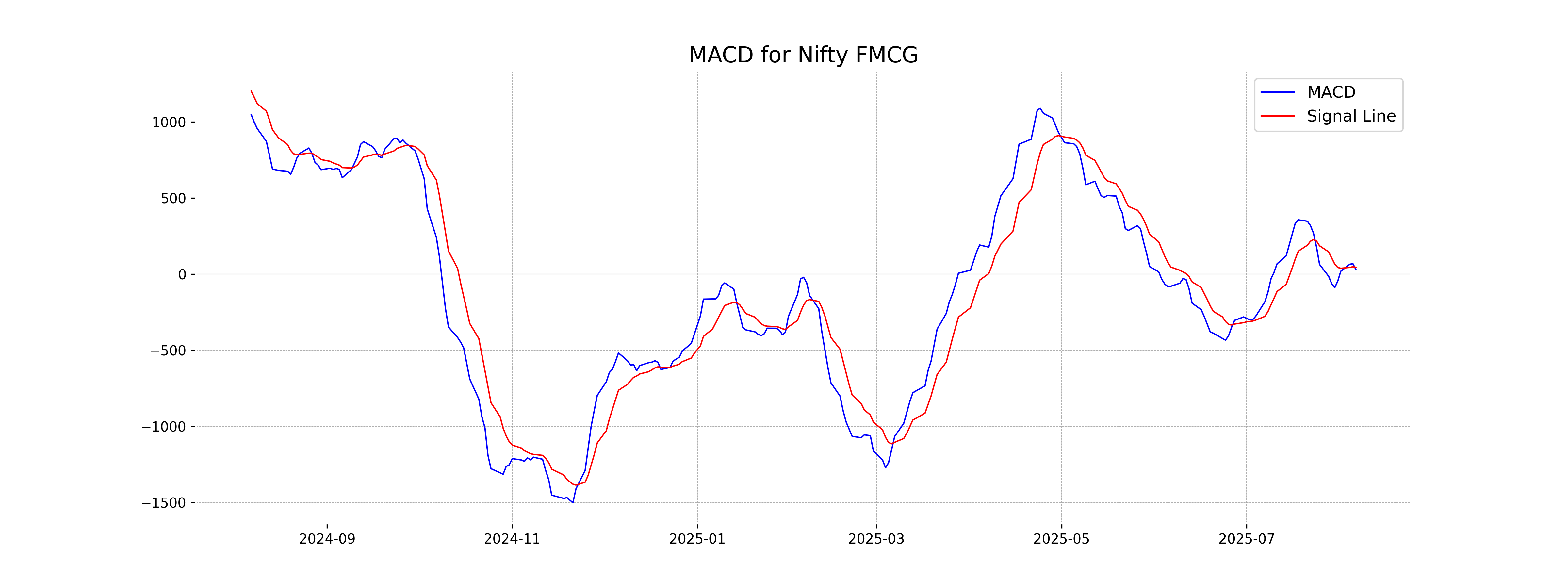 The MACD for Nifty FMCG is 30.01, which is below the MACD Signal at 45.28, indicating a bearish momentum in the stock. The negative divergence suggests potential selling pressure and possibly a continued downward trend in the near term.