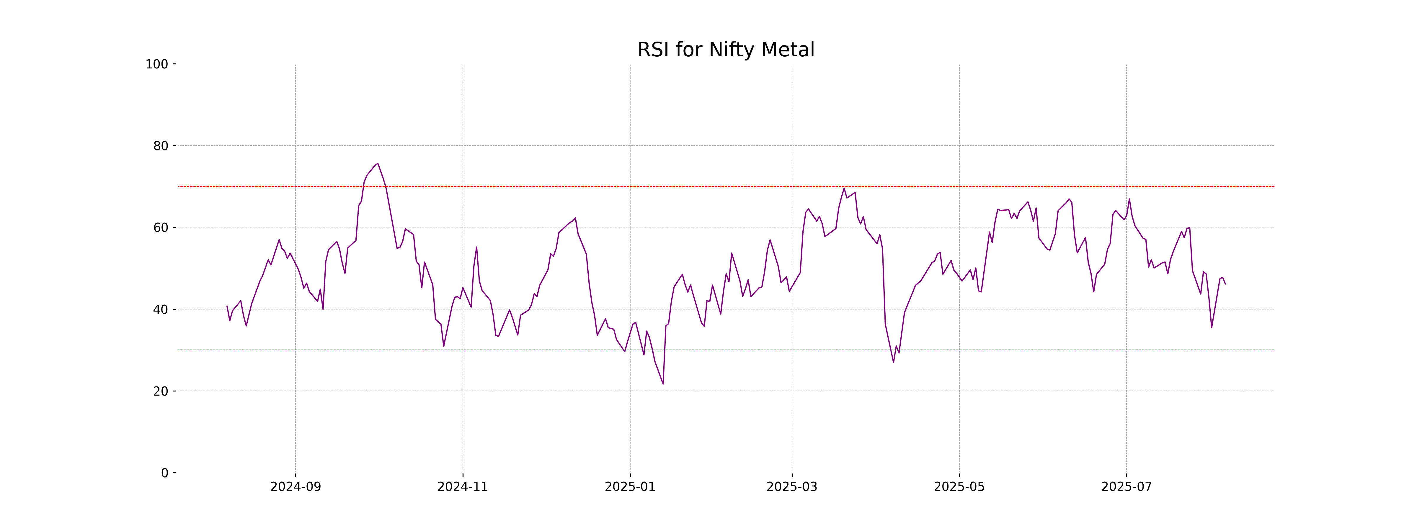 RSI Analysis for Nifty Metal: The Relative Strength Index (RSI) for Nifty Metal is 46.14, indicating a neutral momentum. This suggests that the index is neither overbought nor oversold, providing no strong directional signal.