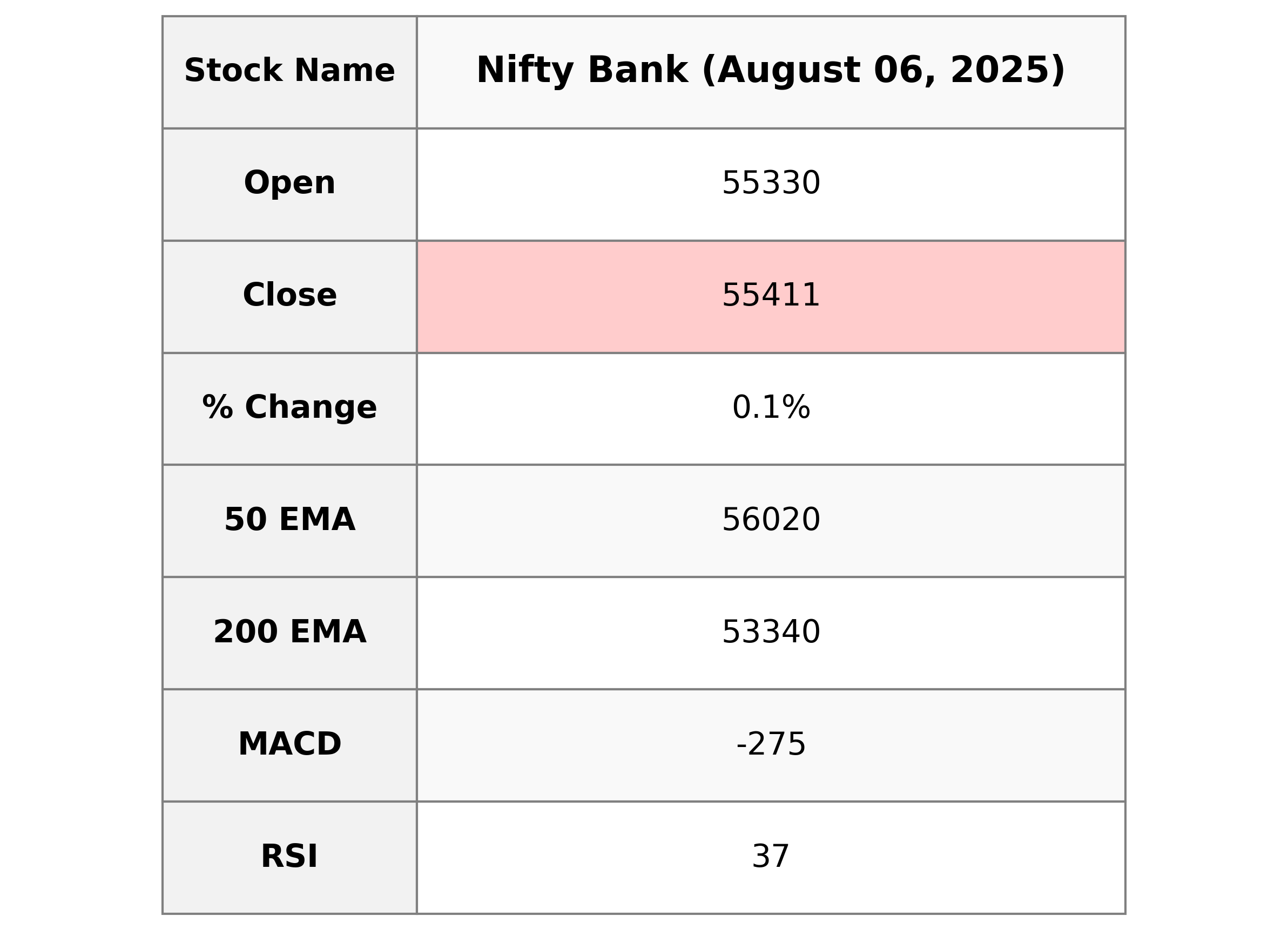Nifty Bank opened at 55,329.80 and closed at 55,411.15, marking a slight increase with a % change of 0.09%, gaining 50.89 points. Despite a higher RSI suggesting potential undervaluation, the stock is trading below its key EMA averages, hinting at a bearish trend. The MACD is also negative, indicating downward momentum.