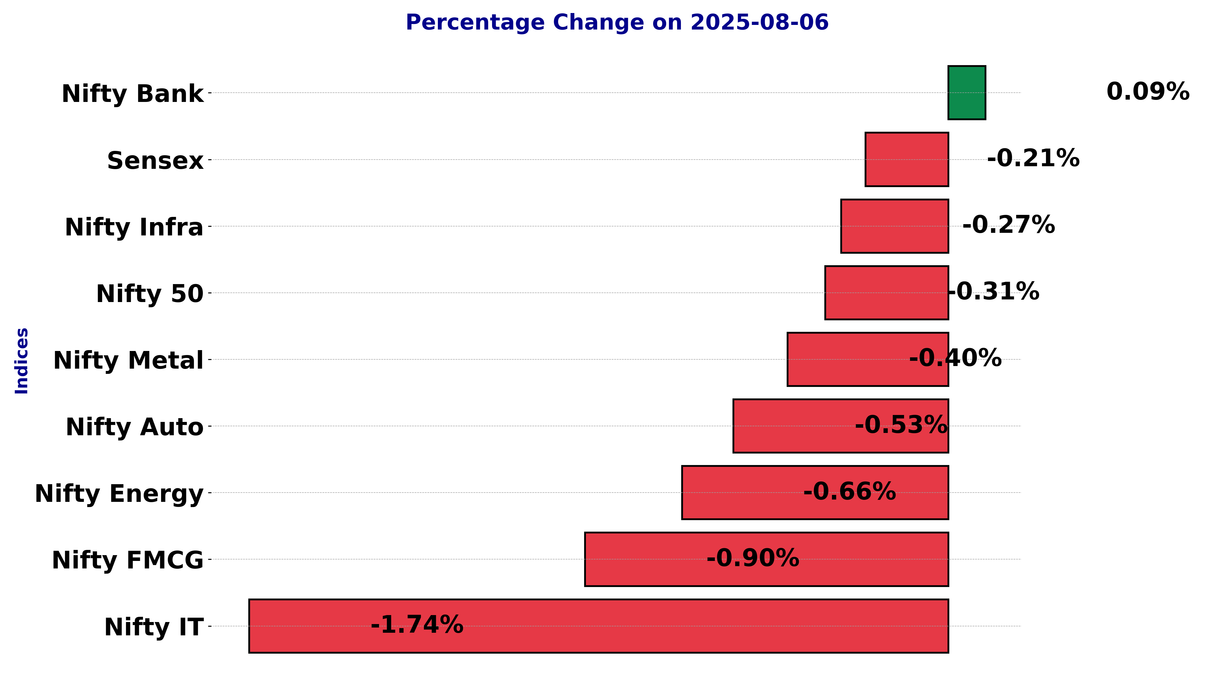 On a particularly challenging day for the stock market on Wednesday (August 6, 2025), several key indices experienced notable changes, often veering into negative territory.