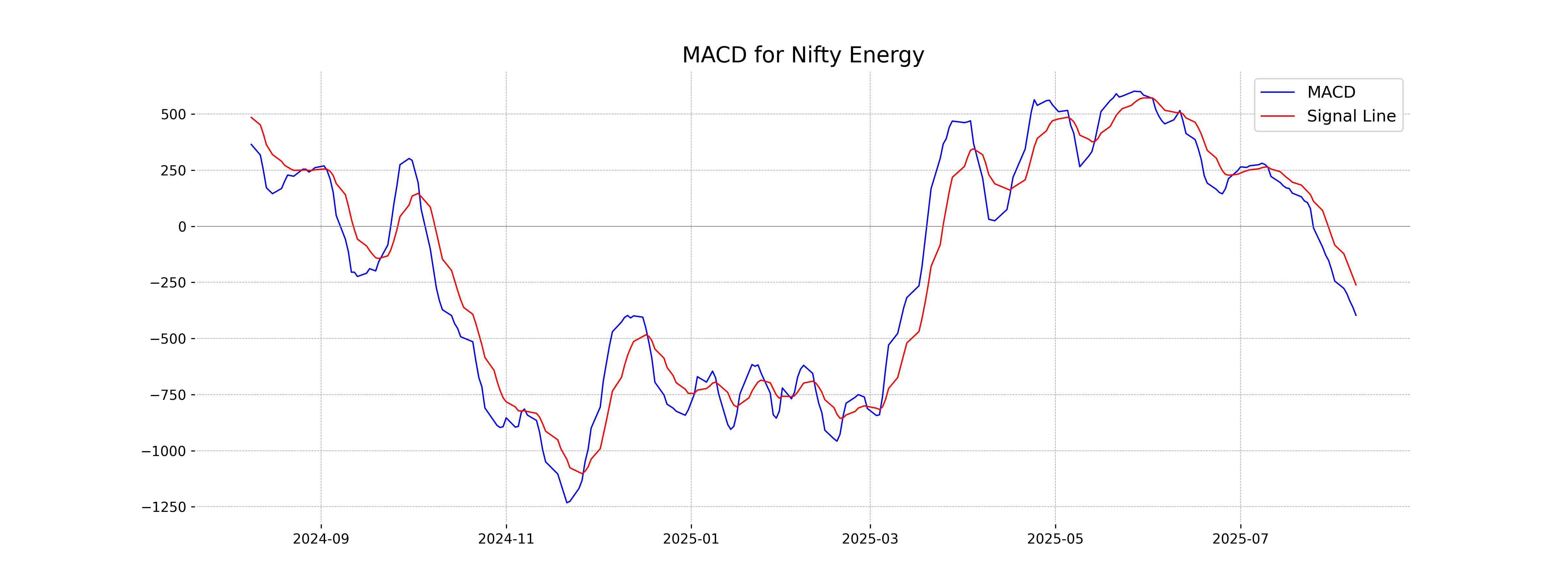 Nifty Energy is exhibiting a bearish trend as observed by the MACD being well below the signal line, with MACD at -396.51 and Signal at -260.57. This indicates strong negative momentum and a potential for continued downside if conditions persist.