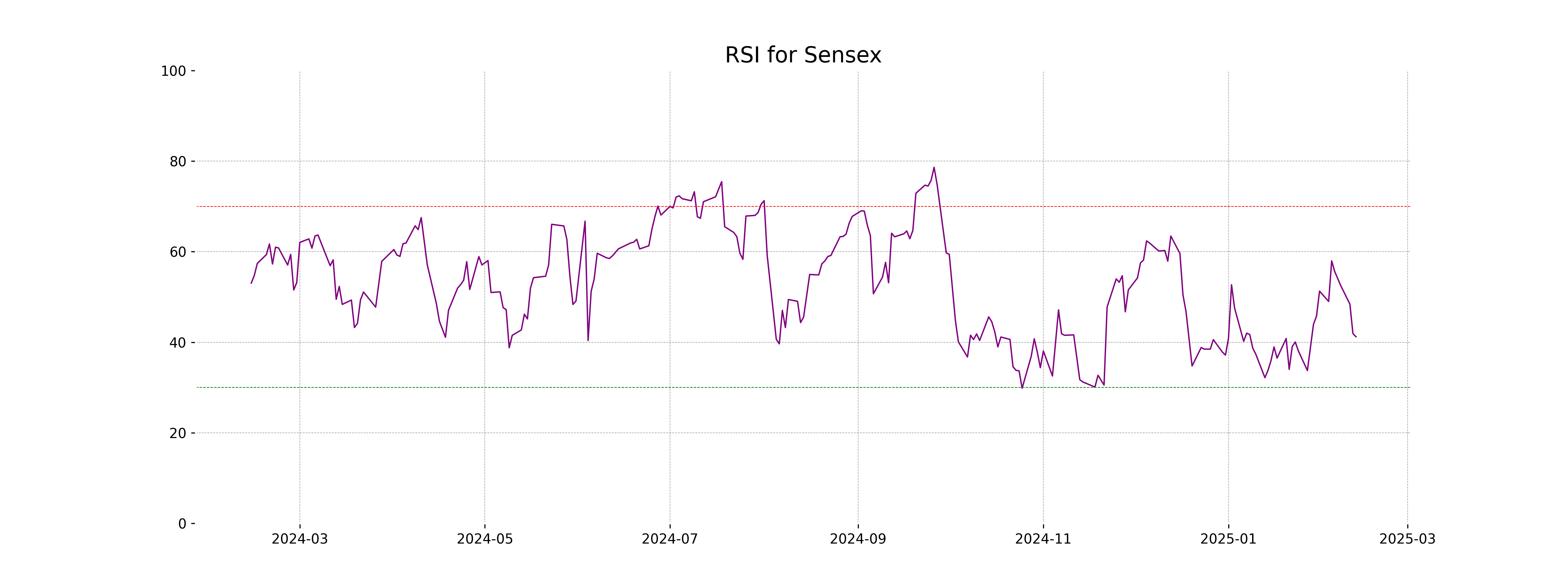 The RSI (Relative Strength Index) for Sensex is at 41.21, indicating that the index is in a neutral zone, but closer to being oversold. A reading below 30 typically suggests oversold conditions, while above 70 denotes overbought conditions. This suggests a potential for price movement stabilization or a change in trend if the RSI continues to move lower.