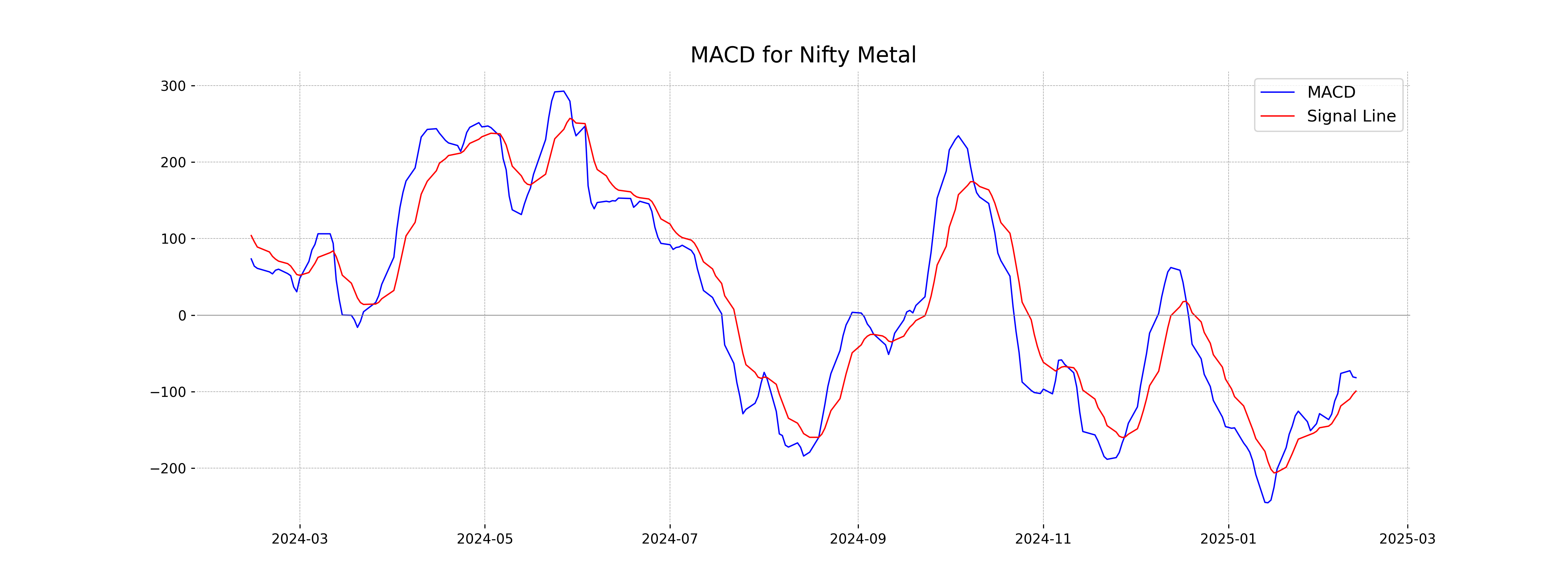 The MACD value for Nifty Metal is -81.78, which is higher than the MACD Signal of -99.38. This suggests a potential bullish crossover is forming, indicating that the stock could be shifting towards a positive momentum. The current RSI of 44.92 implies that it is not in the overbought or oversold territory.