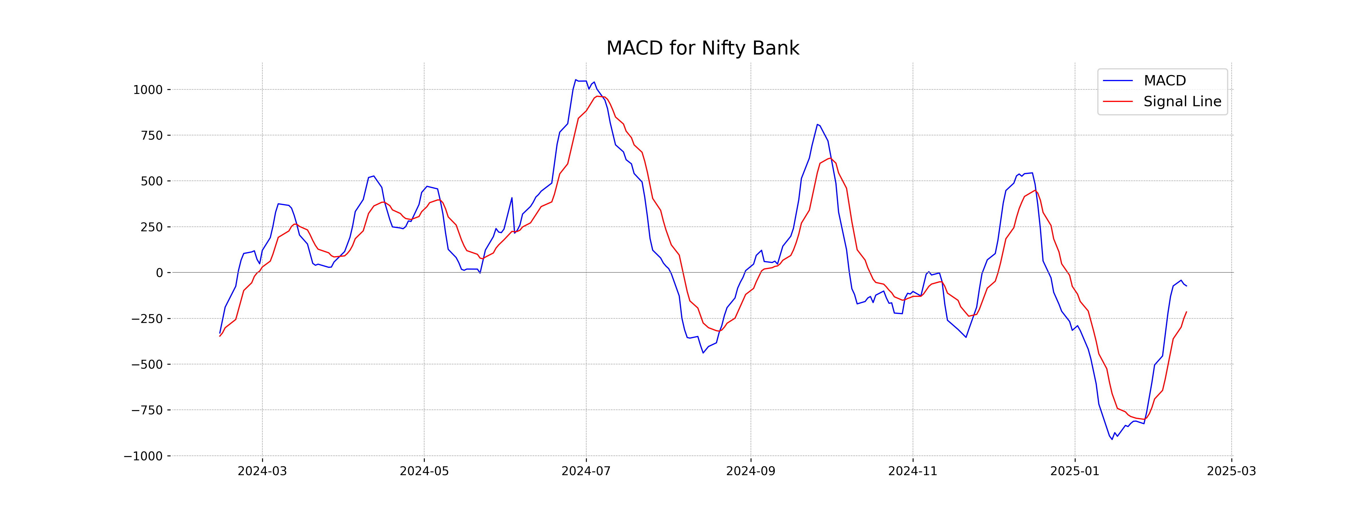 The RSI for Nifty Bank is 47.45, indicating a neutral position for the stock. An RSI value below 50 typically suggests that the stock is neither overbought nor oversold, signaling a potential balance in buying and selling pressures.