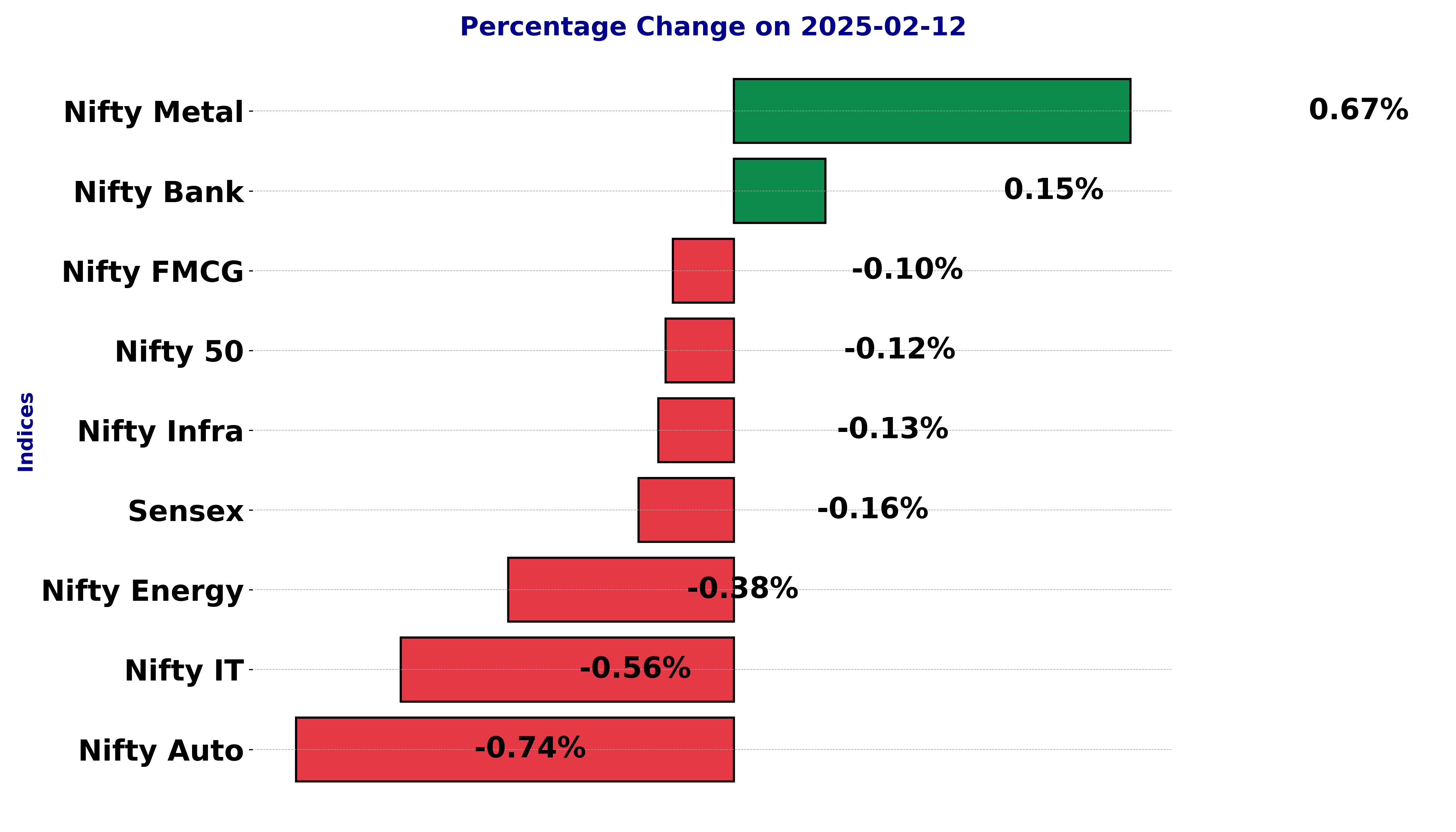 The national stock market indices showed varied performances on February 12, 2025, reflecting the economic sentiment.