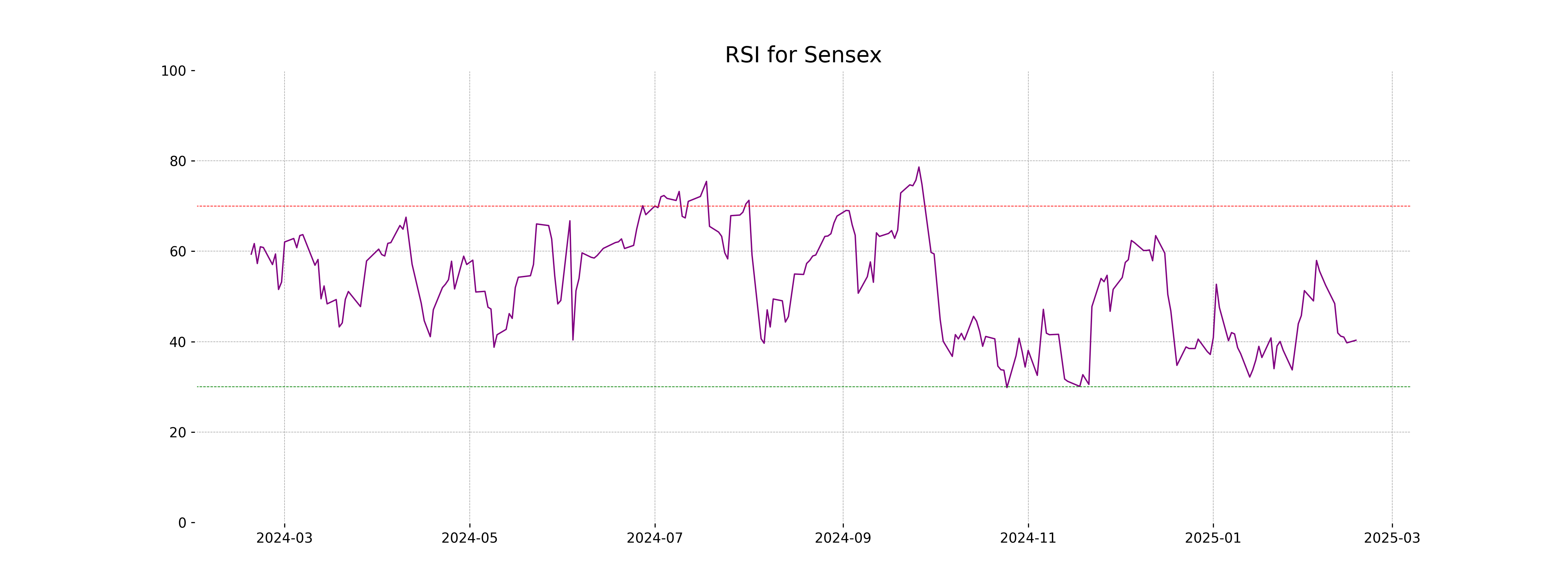 The current RSI value for Sensex is 40.31, which places it in the neutral to slightly oversold territory. This suggests that the index is neither overbought nor oversold, but closer to being potentially oversold, which might indicate a buying opportunity if other factors support.