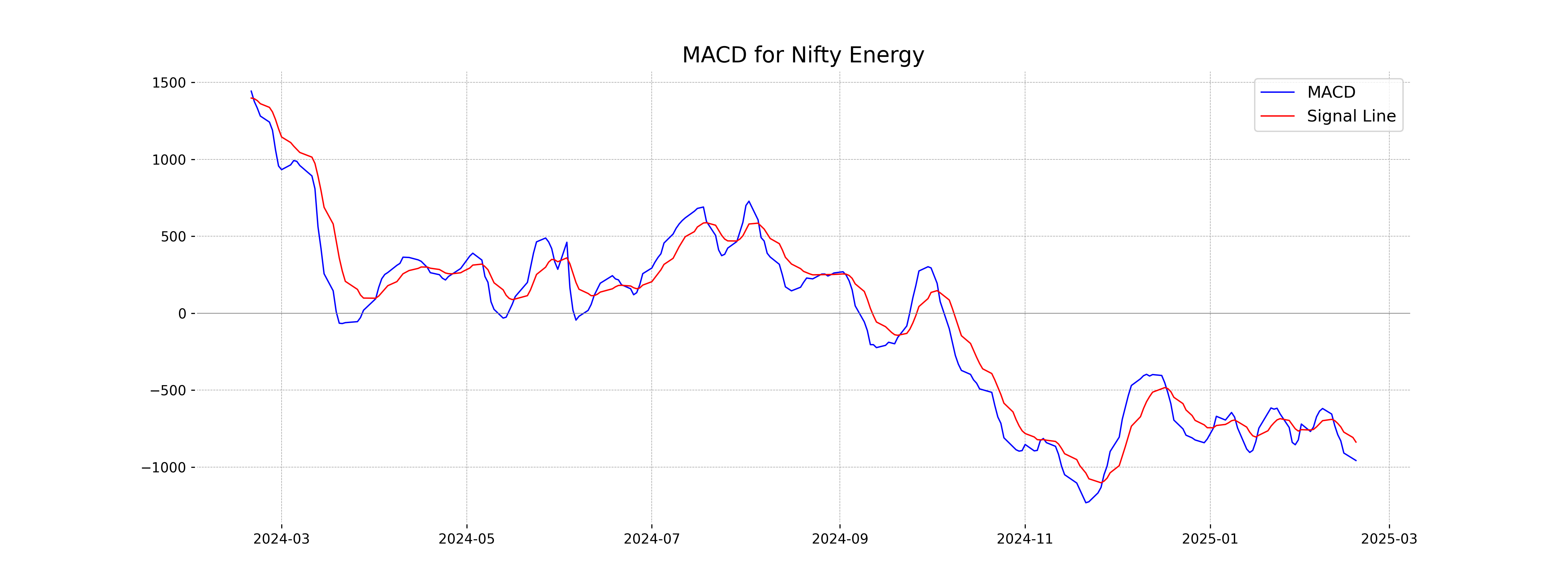 The RSI for Nifty Energy is 34.44, which suggests that the stock is approaching the oversold region, typically considered below 30. This could indicate potential undervaluation, but further analysis is recommended to confirm any buying opportunities.