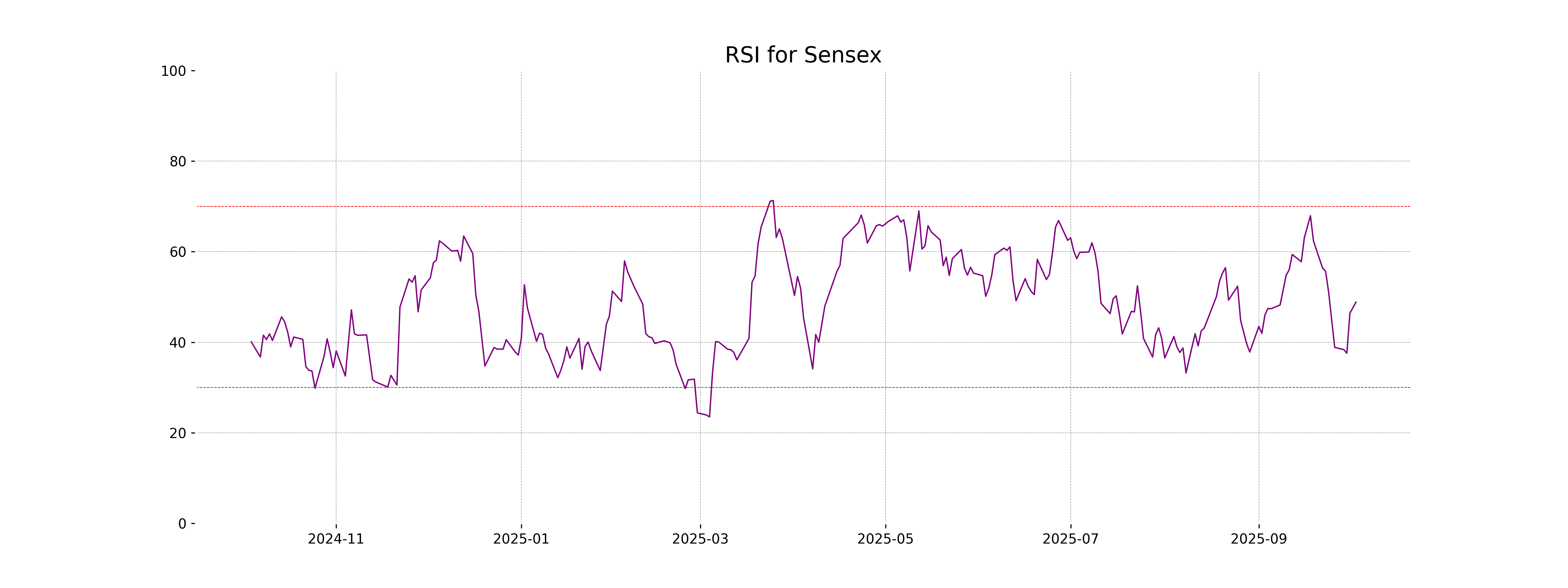 The RSI for Sensex is currently at 48.85, indicating a neutral position close to the midpoint of the typical 0 to 100 scale. It neither suggests an overbought nor oversold condition, implying that the price isn't showing significant bullish or bearish momentum at this time.