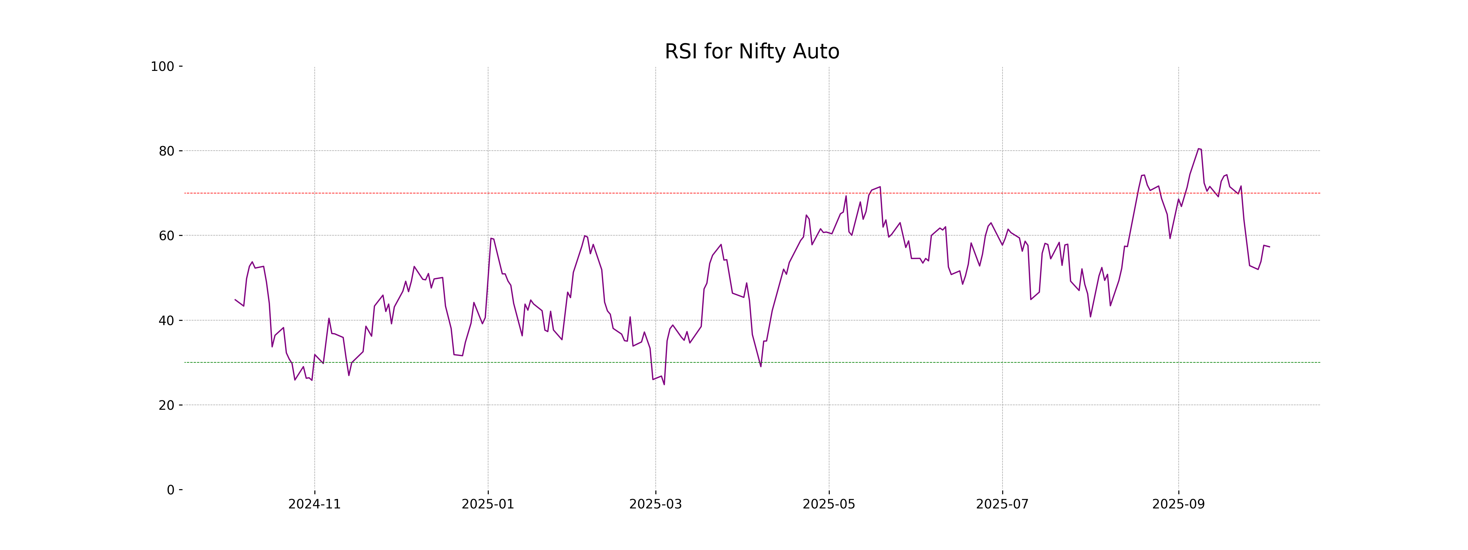 Based on the data provided, the RSI for Nifty Auto is 57.31. This indicates a neutral position, suggesting the index is neither overbought nor oversold at the current level. Typically, an RSI value between 30 and 70 is considered neutral.