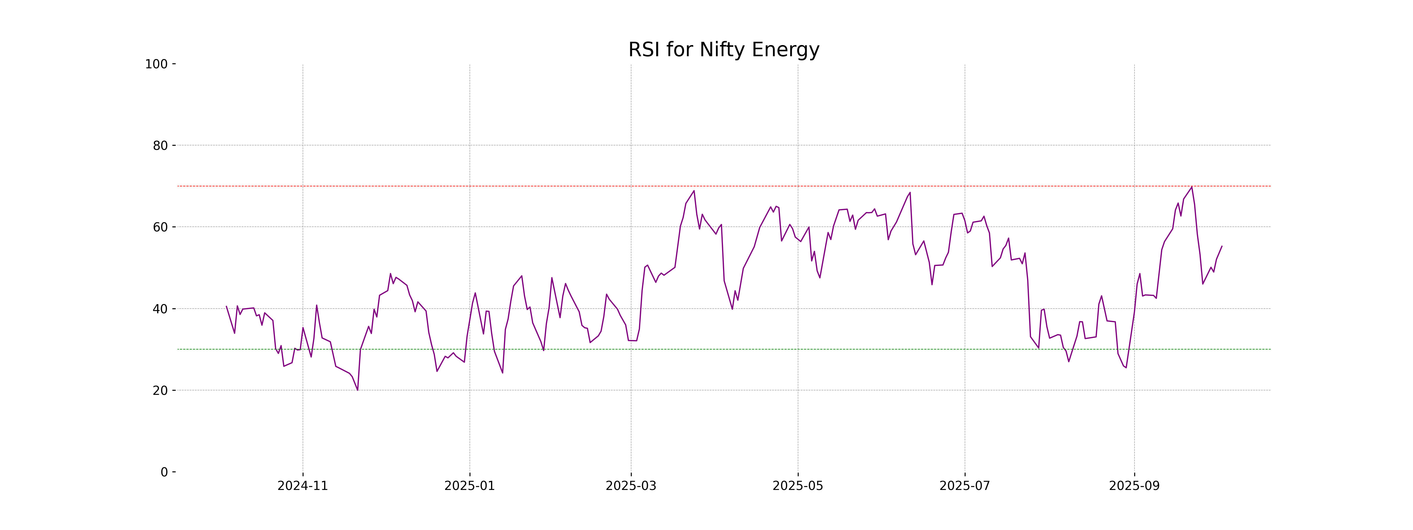 The RSI for Nifty Energy is 55.23, indicating a neutral position. It suggests that the stock is neither overbought nor oversold at the current levels, allowing for potential movement in either direction depending on market trends.