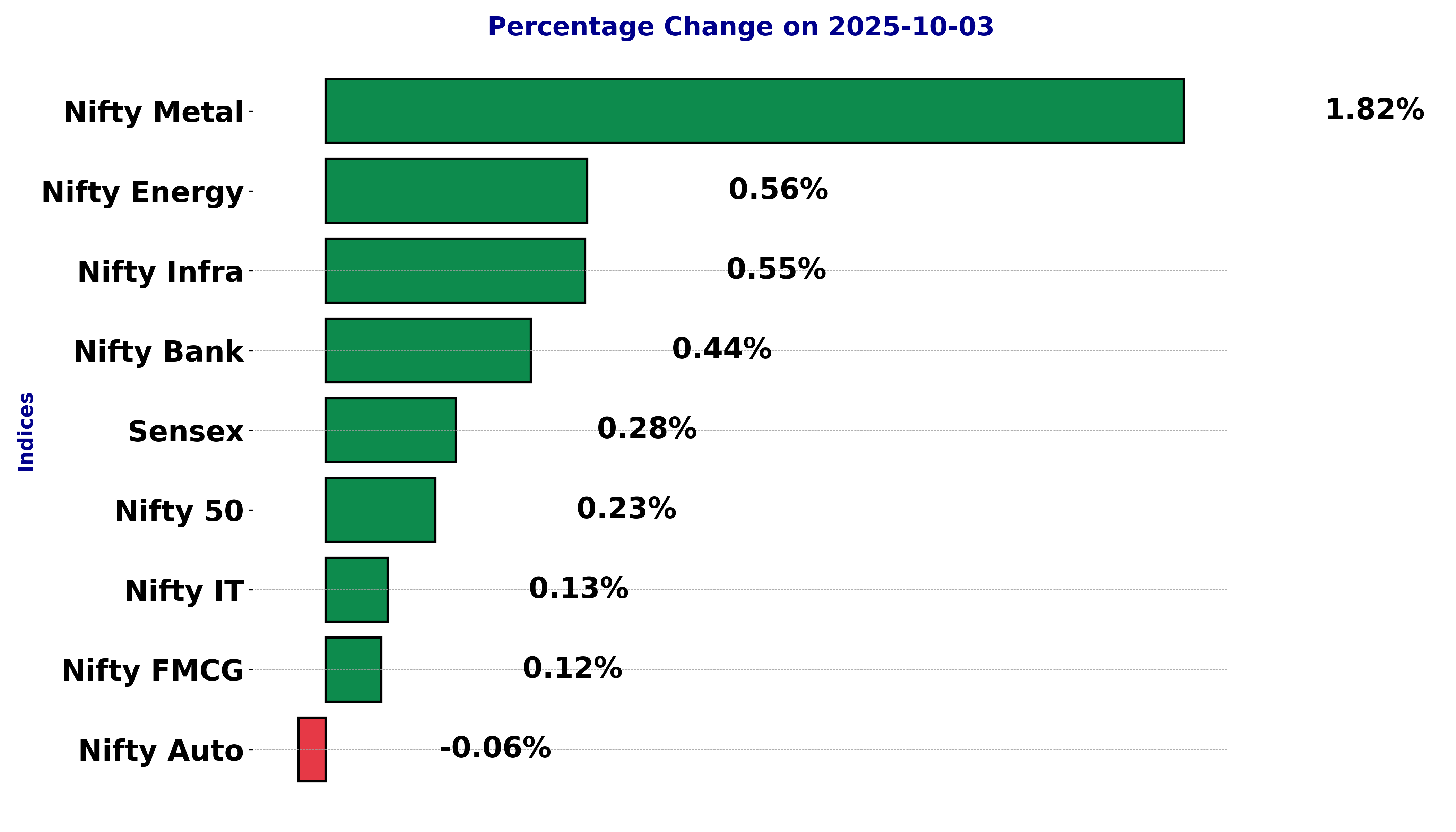 In today's stock market performance (Friday - October 3, 2025) , several sectors and indices exhibited notable changes, reflecting a diverse set of movements across the market.