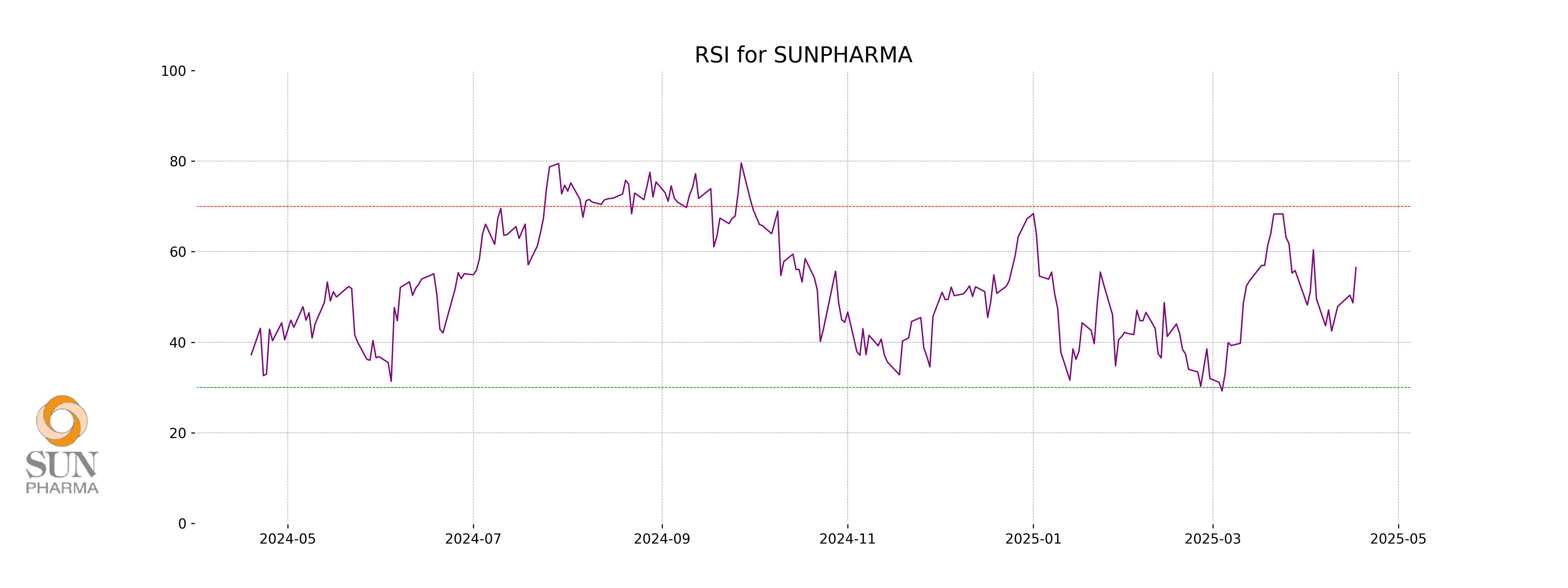The Relative Strength Index (RSI) for Sun Pharma is at 56.48. This suggests that the stock is currently in a neutral range, indicating neither overbought nor oversold conditions. Typically, an RSI above 70 indicates overbought, while below 30 suggests oversold conditions.