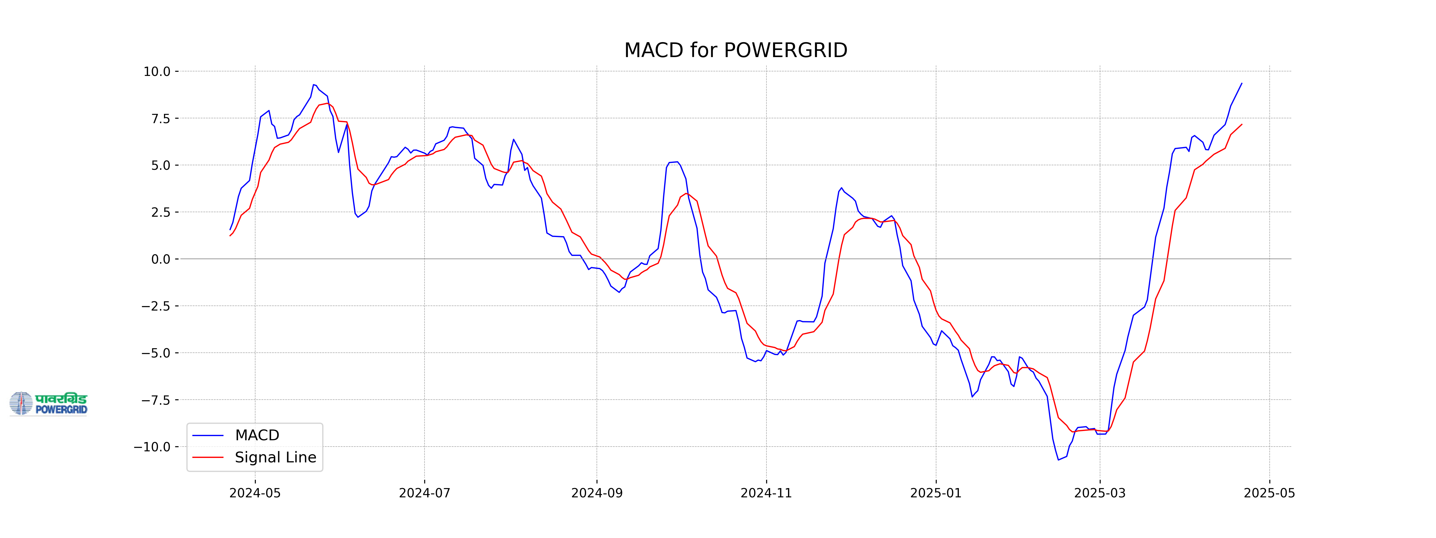 The MACD for Power Grid is 9.35, which is above the MACD Signal of 7.17. This indicates a bullish momentum as the MACD line is above the signal line, suggesting potential upward price movement.