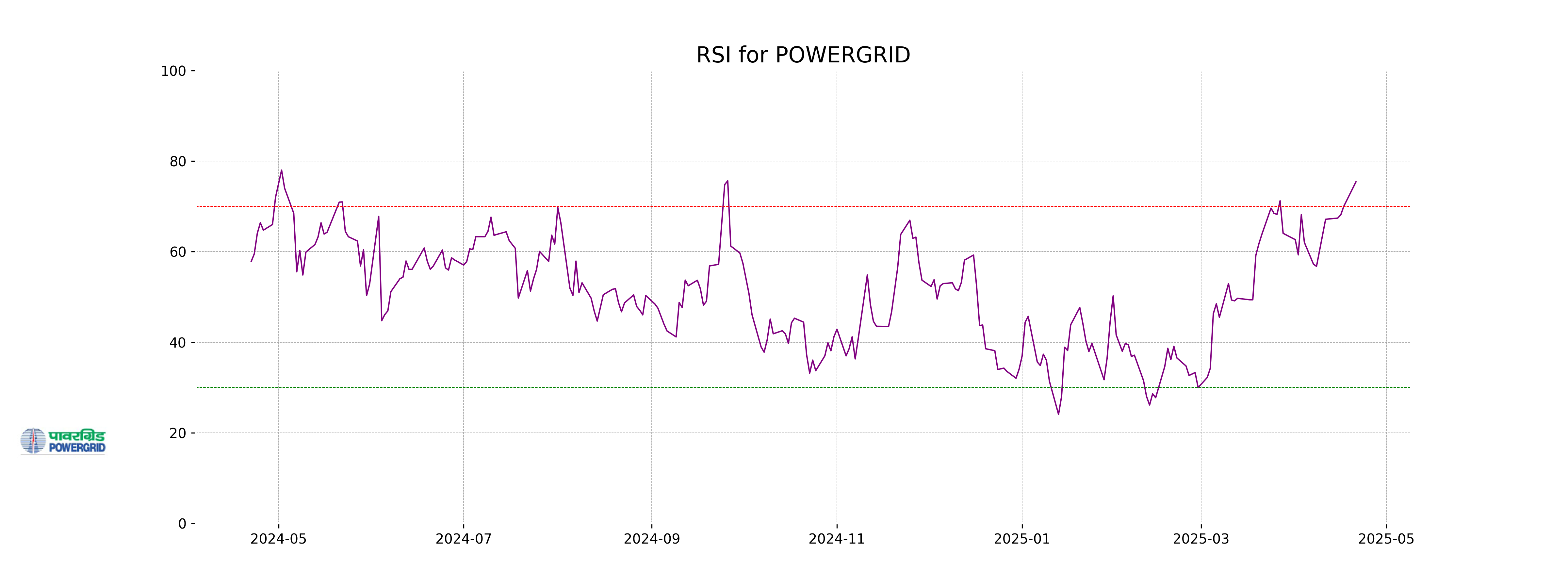 Power Grid's RSI is 75.42, indicating that the stock is in overbought territory. This suggests that the stock may be due for a potential pullback or consolidation. Investors should exercise caution and consider other indicators before making any trading decisions.