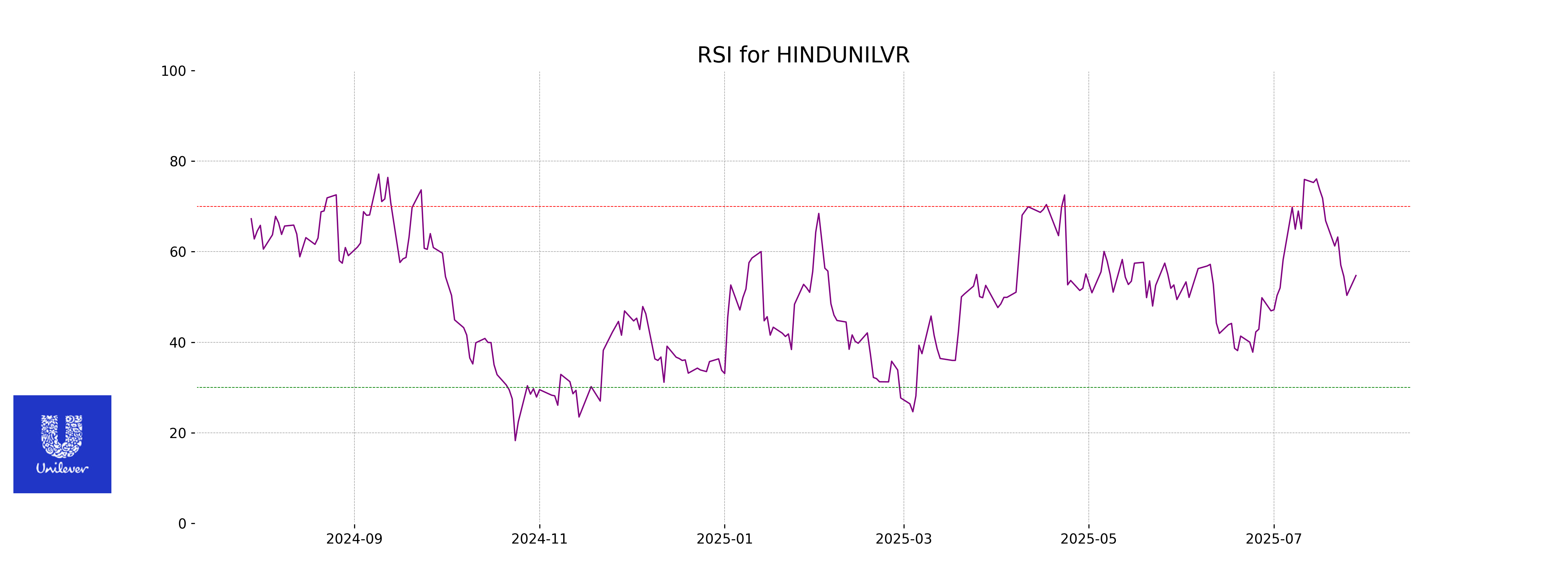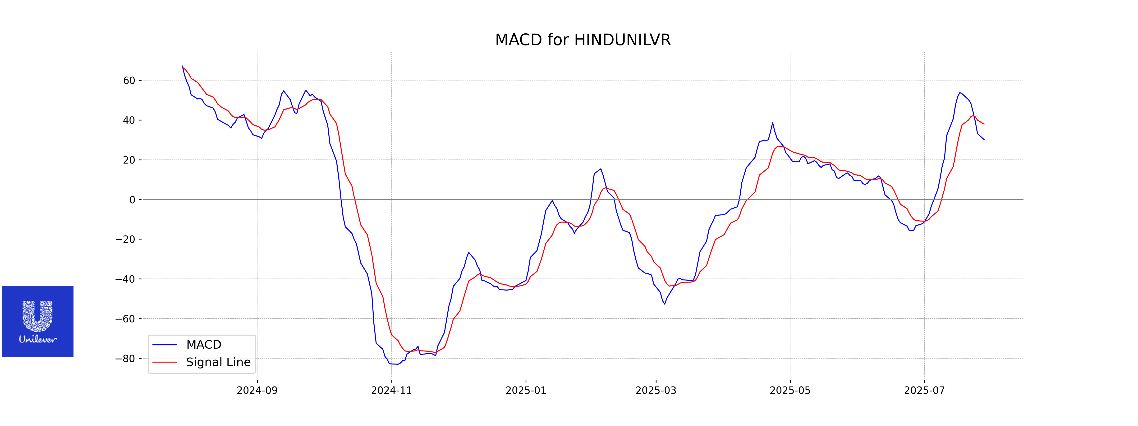 Hindustan Unilever's MACD is currently at 30.13, which is below its MACD Signal line at 37.94. This indicates a potential bearish momentum in the stock. Traders may interpret this as a signal for possible downward movement or a cautionary sign for bullish positions.