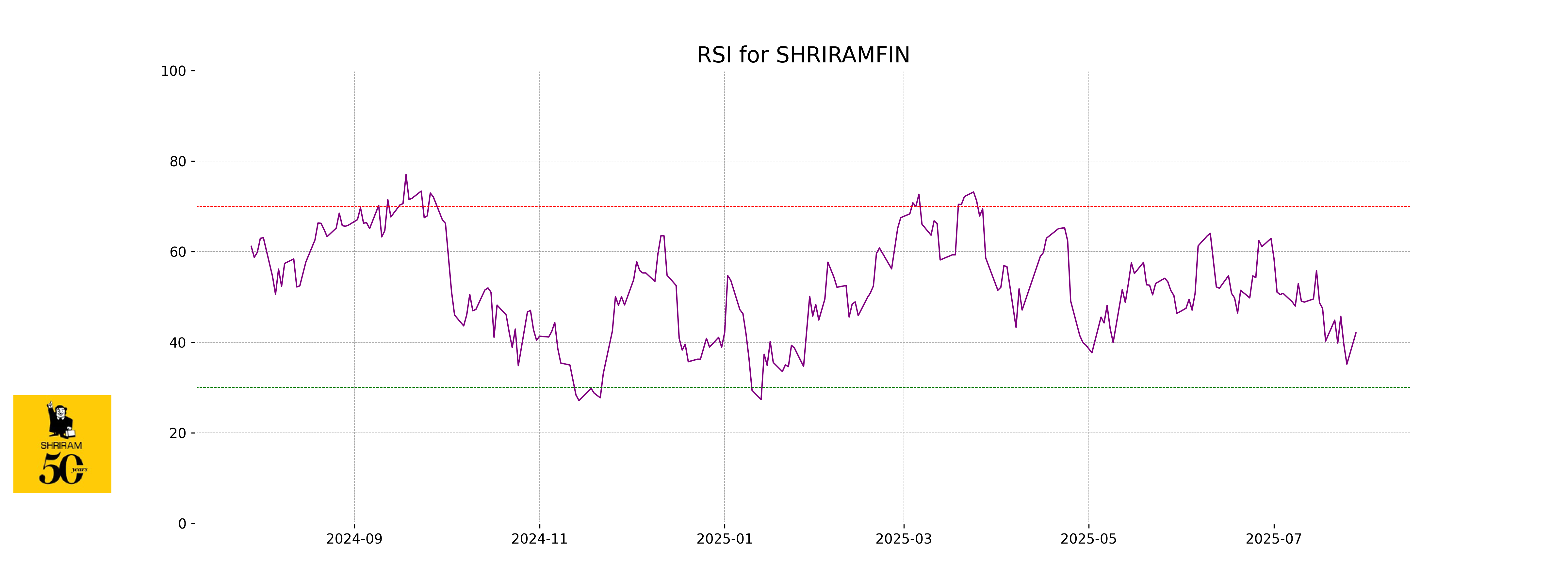 The RSI for Shriram Finance is 42.06, indicating a weak momentum as it is below the neutral level of 50. This suggests that the stock is neither in the overbought nor oversold territory, but it is closer to being oversold. Investors may need to monitor any potential downward or upward movements in the stock price from this level.
