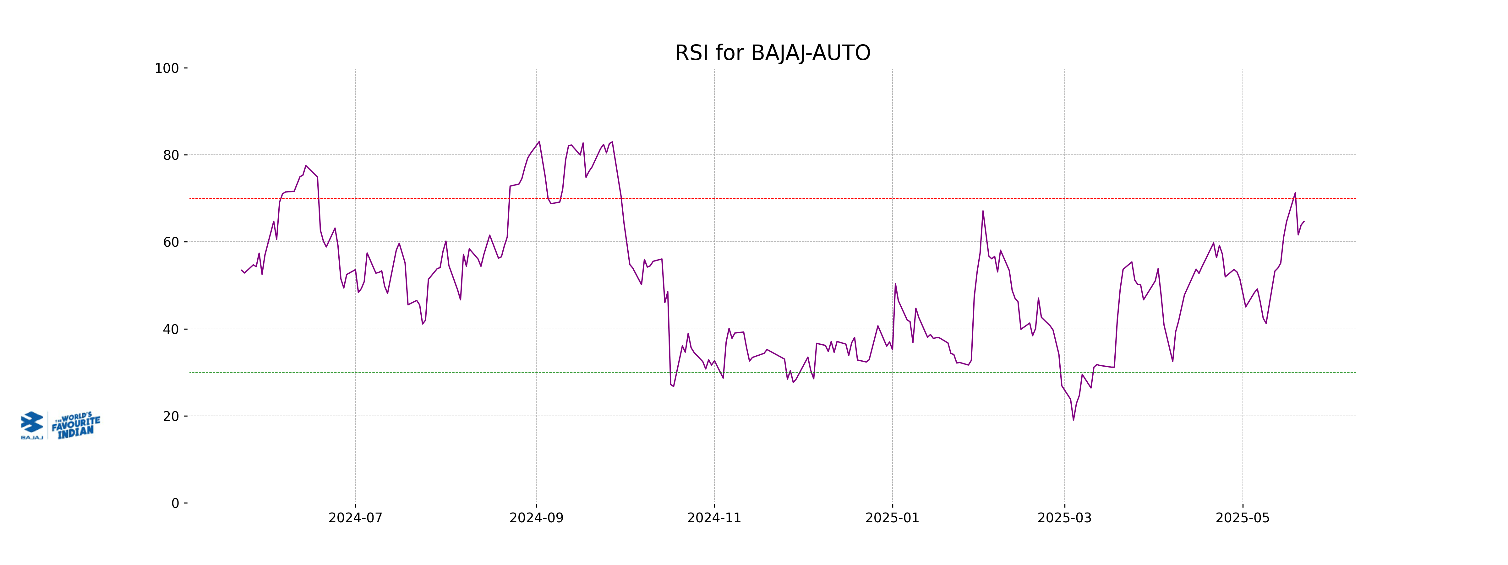MACD Analysis for Bajaj Auto: The MACD value of 188.72, which is above the MACD Signal line at 104.49, suggests a bullish trend. This indicates increasing upward momentum in the stock's price movement.